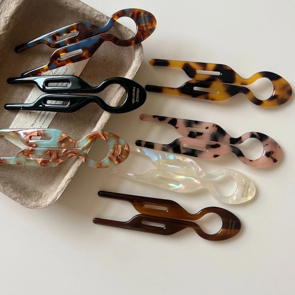 Crafted from a single piece of high-quality, polished cellulose acetate, this tool is designed to be both strong and incredibly gentle on your hair. Its unique shape and 5.3-inch (13.5cm) prongs glide smoothly to gather, twist, and "lock" your hair into a chic bun or twist, all without a single damaging elastic band.