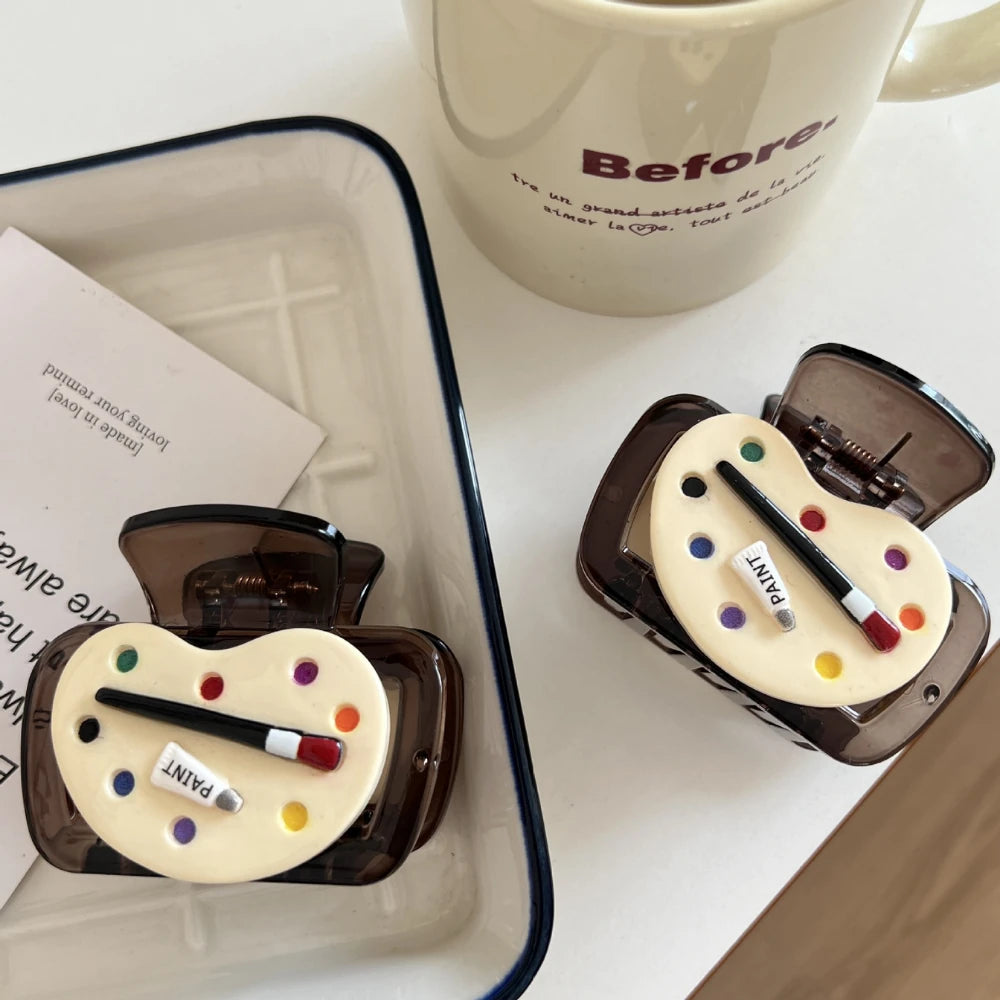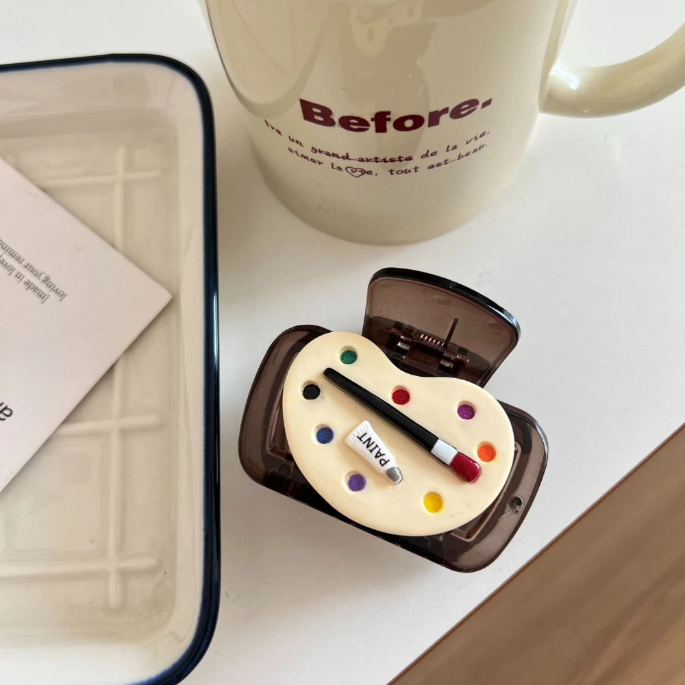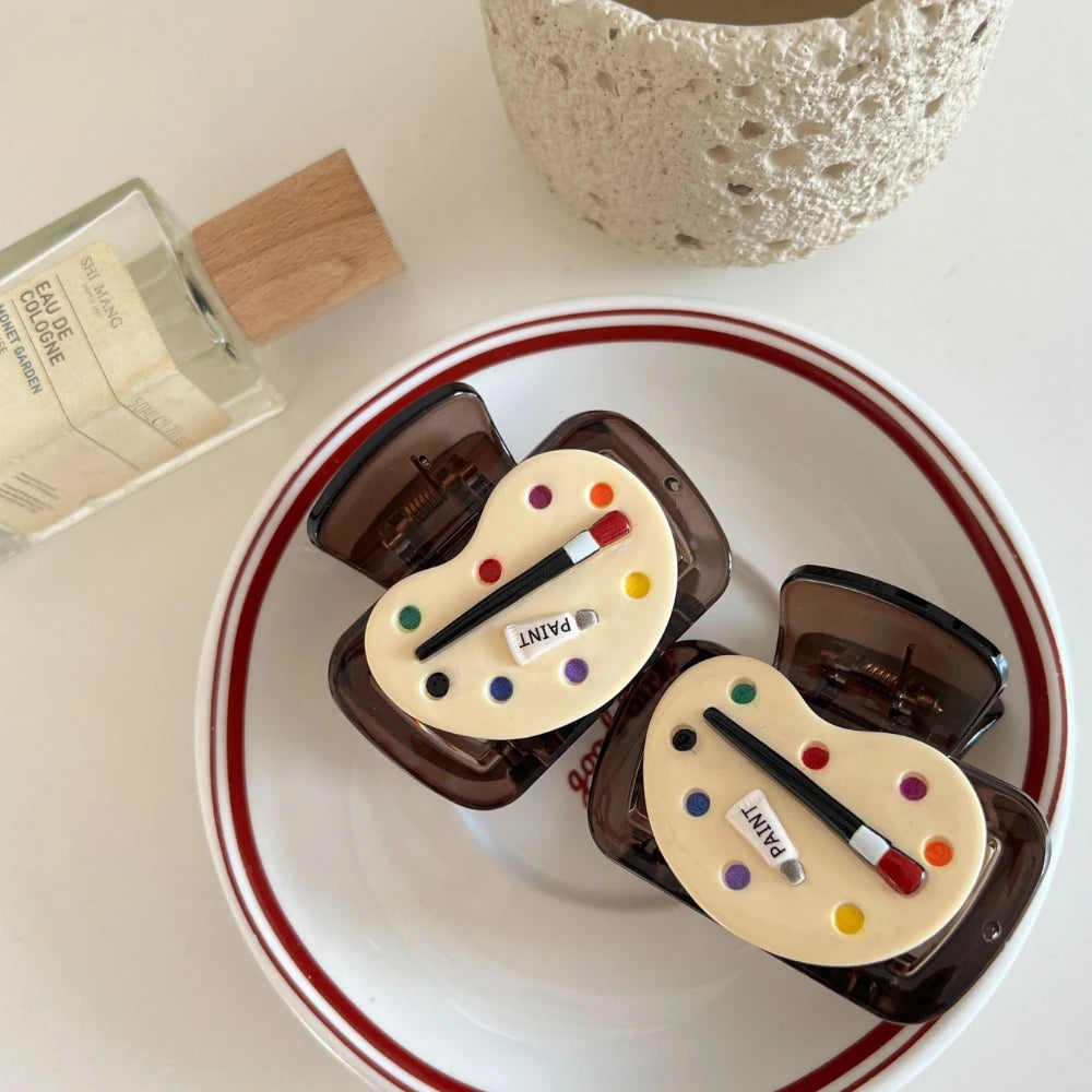 Unleash your inner artist with this charming painter's palette hair clip. This playful accessory is a tiny, wearable piece of art, perfect for adding a "dopamine" splash of color and creativity to your look. The detailed, 3D palette—complete with a tiny brush and dabs of paint—is mounted on a sturdy, translucent claw. At 2.4 inches (6cm), it's the ideal small accent for securing bangs, adorning a braid, or adding a touch of whimsy to a half-up style.