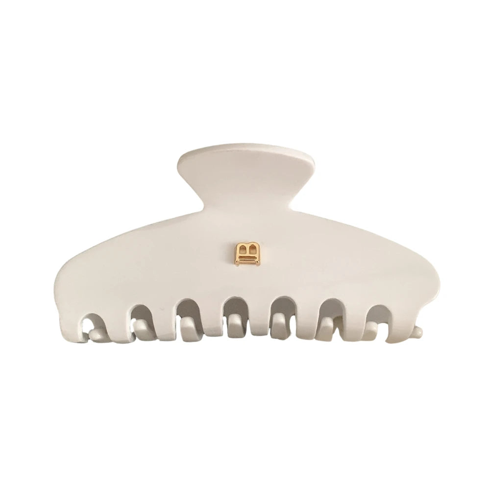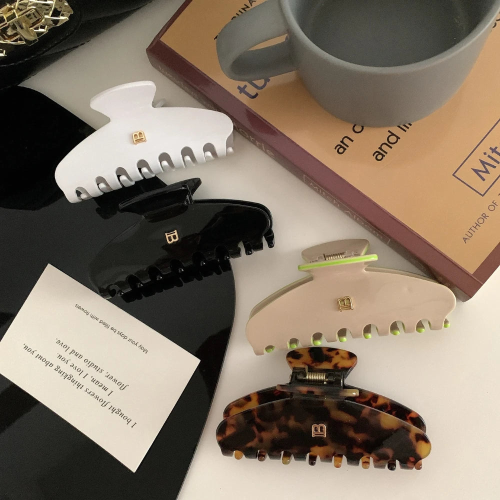 Crafted from high-gloss, premium cellulose acetate, each clip is adorned with a polished gold-tone "B" monogram. The 3.5-inch size and gently curved body are perfect for securing a chic high ponytail or an effortless half-up style. Its strong, rounded teeth provide a reliable, all-day hold without snagging or pulling, making it a true everyday essential.