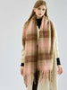 Embrace the chill with this chunky bouclé scarf. Featuring a warm pink and brown plaid pattern, this accessory is crafted from specialized loop yarn to create a fuzzy, mohair-like texture without the itch. The substantial 285g weight and extra-long design provide superior warmth, finished with stylish chunky twisted tassels.