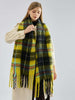 Brighten up your cold-weather look with this chunky brushed scarf. Featuring a bold plaid pattern in vibrant yellow, green, and black tones, this accessory is crafted with a fuzzy, mohair-like texture for superior warmth. The extra-long length and heavy weight (300g) make it the perfect statement piece for deep winter.