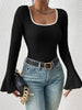 The design is finished with elegant long sleeves that flare out into a dramatic bell cuff, adding a playful yet graceful movement to your every gesture. Whether you are aiming for a casual "Old Money" daytime look or a polished evening ensemble, this top delivers effortless style and comfort.