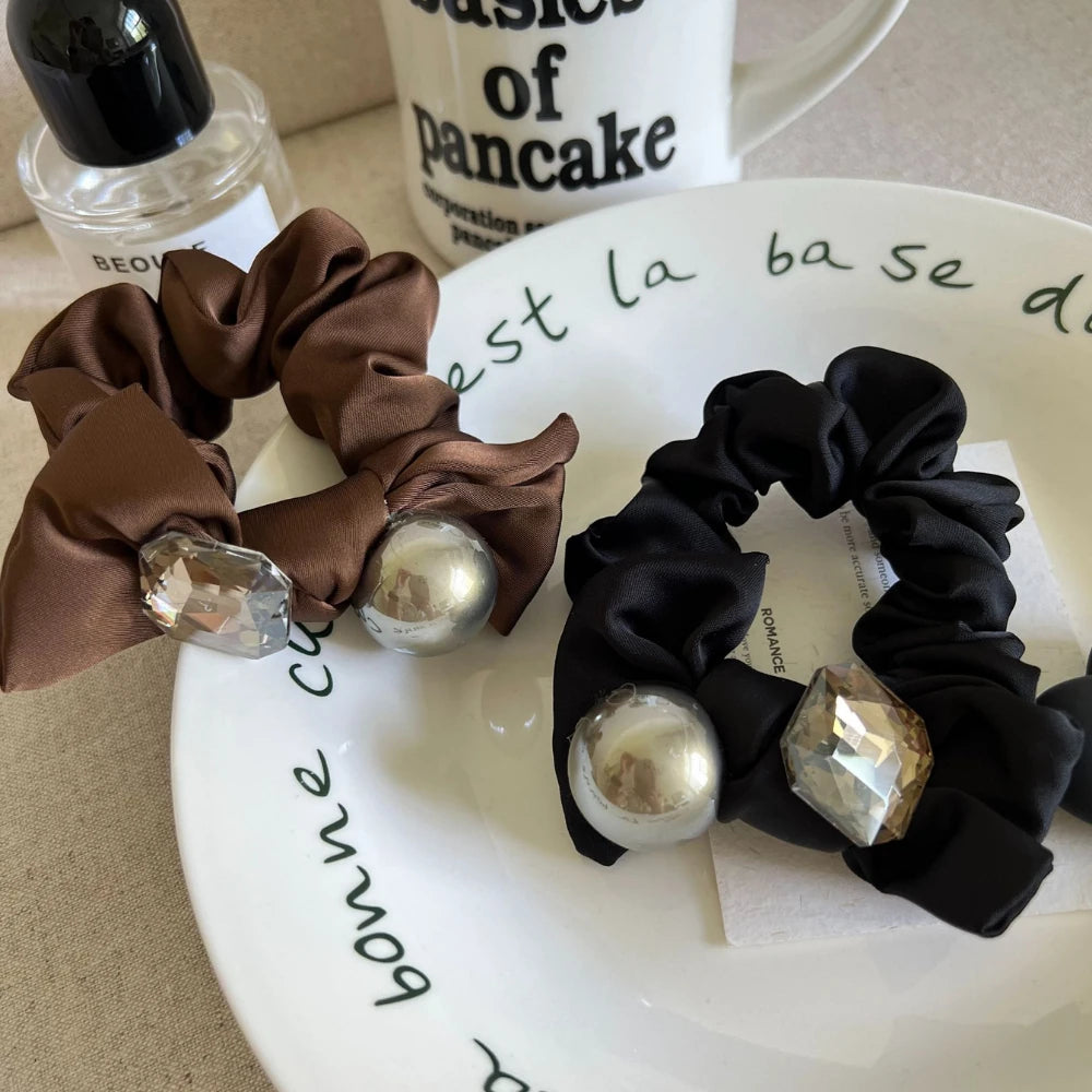 Elevate your ponytail from a last resort to a sophisticated statement. This isn't just a scrunchie; it's a piece of modern hair jewelry. Designed for the woman who appreciates a chic, finishing touch, it blends soft, luminous satin with bold, contemporary charms.