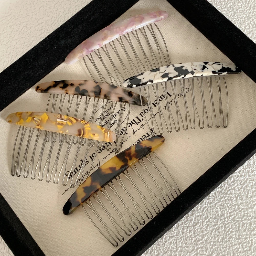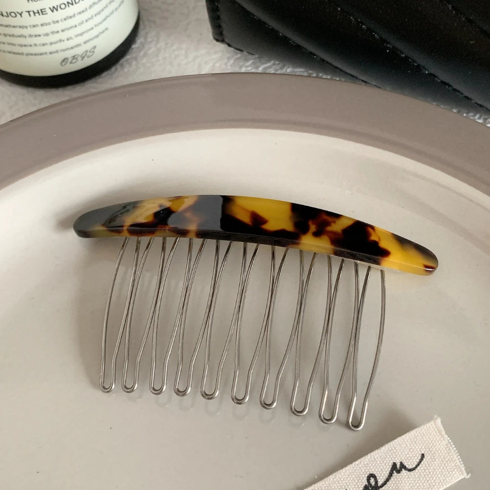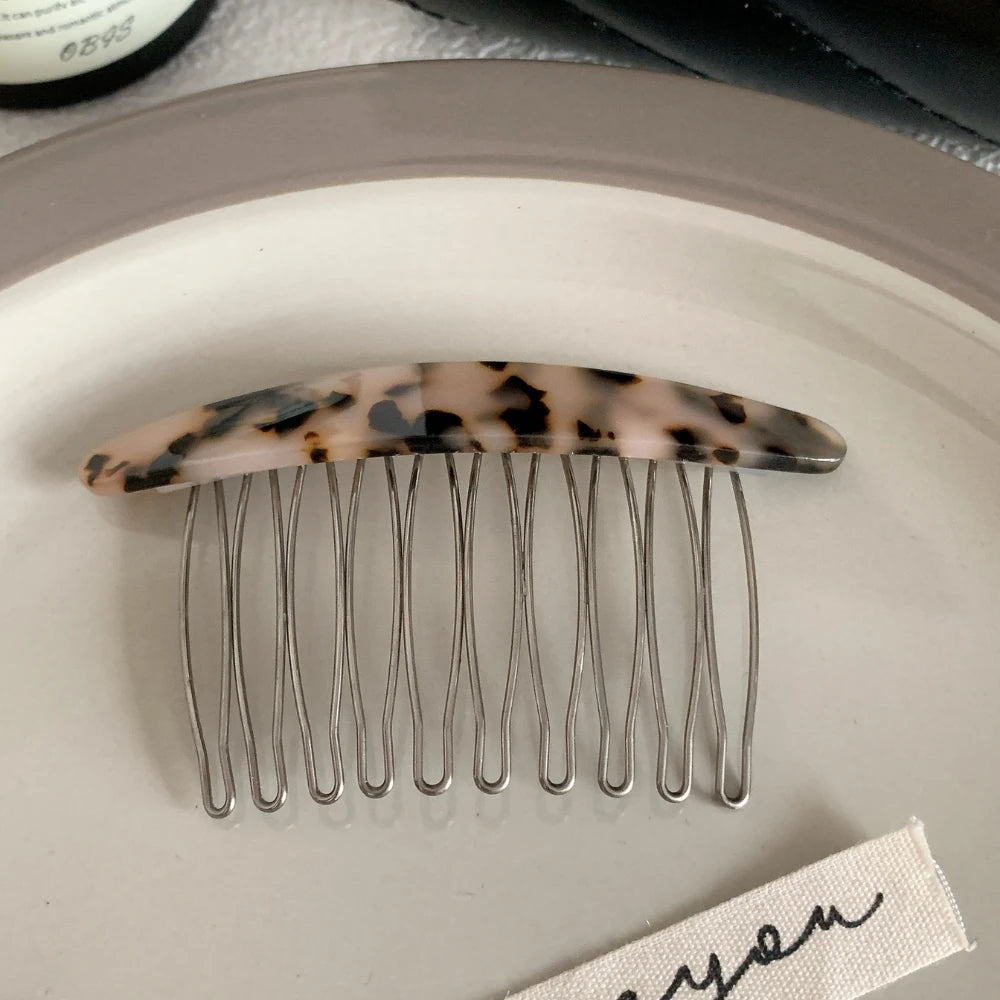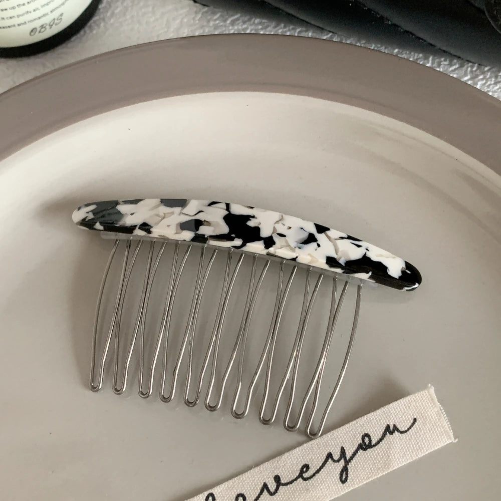 The classic curved top is crafted from high-quality, polished cellulose acetate, showcasing timeless patterns like tortoiseshell and marble. The 3.3-inch (8.4cm) wide base features fine metal teeth that glide smoothly into your hair, providing a firm, all-day hold.