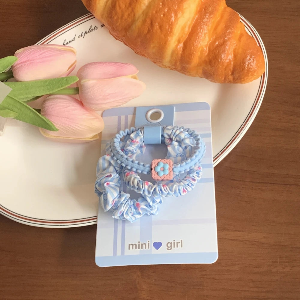 Each set is a unique mix of textures, from mini fabric scrunchies and braided ties to elastic bands with sweet charms like bunnies, hearts, and tassels. They're designed to be the perfect "finishing touch" for your hairstyle.