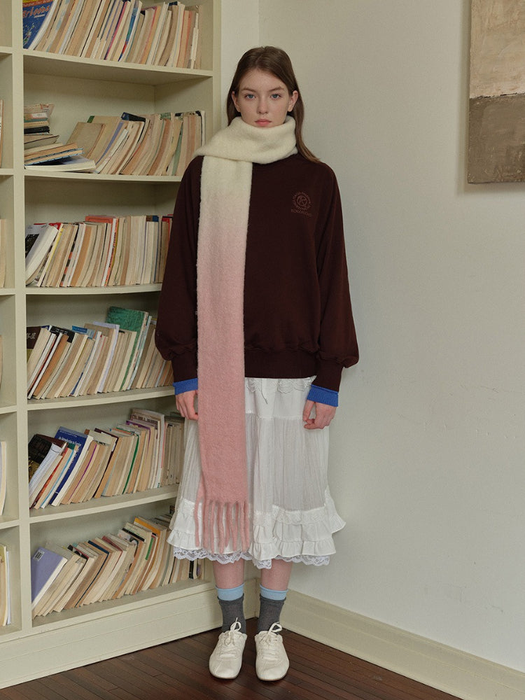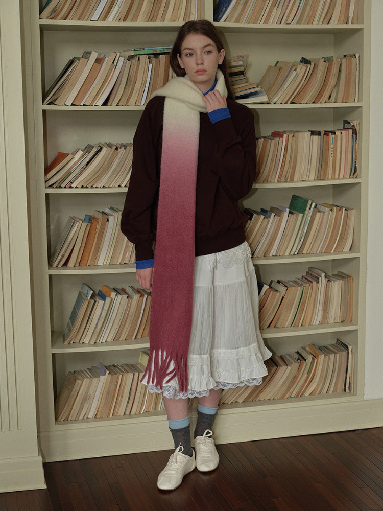 Capture the sweet essence of the "Soft Girl" and "Coquette" aesthetics with this stunning gradient scarf. Utilizing a specialized dip-dye technique, the color melts seamlessly from a pristine white into a lovely soft pink, resembling strawberry milk. It’s the perfect accessory to add a touch of warmth and girlhood charm to neutral winter coats or cozy oversized sweaters.
