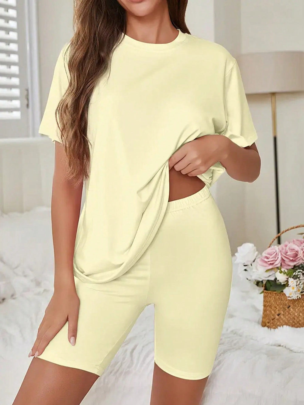 Master the "clean girl" aesthetic with our Essential Oversized Tee & Biker Shorts Lounge Set. This versatile two-piece ensemble features a trendy, loose-fitting longline t-shirt paired with figure-hugging biker shorts, creating the perfect balance of comfort and style. Crafted from a premium "cotton-feel" stretch blend, this set is buttery soft against the skin and moves with you throughout the day. Whether you're working from home, heading out for a coffee run, or enjoying a restful night's sleep, this solid color set is the ultimate wardrobe staple for effortless daily wear.