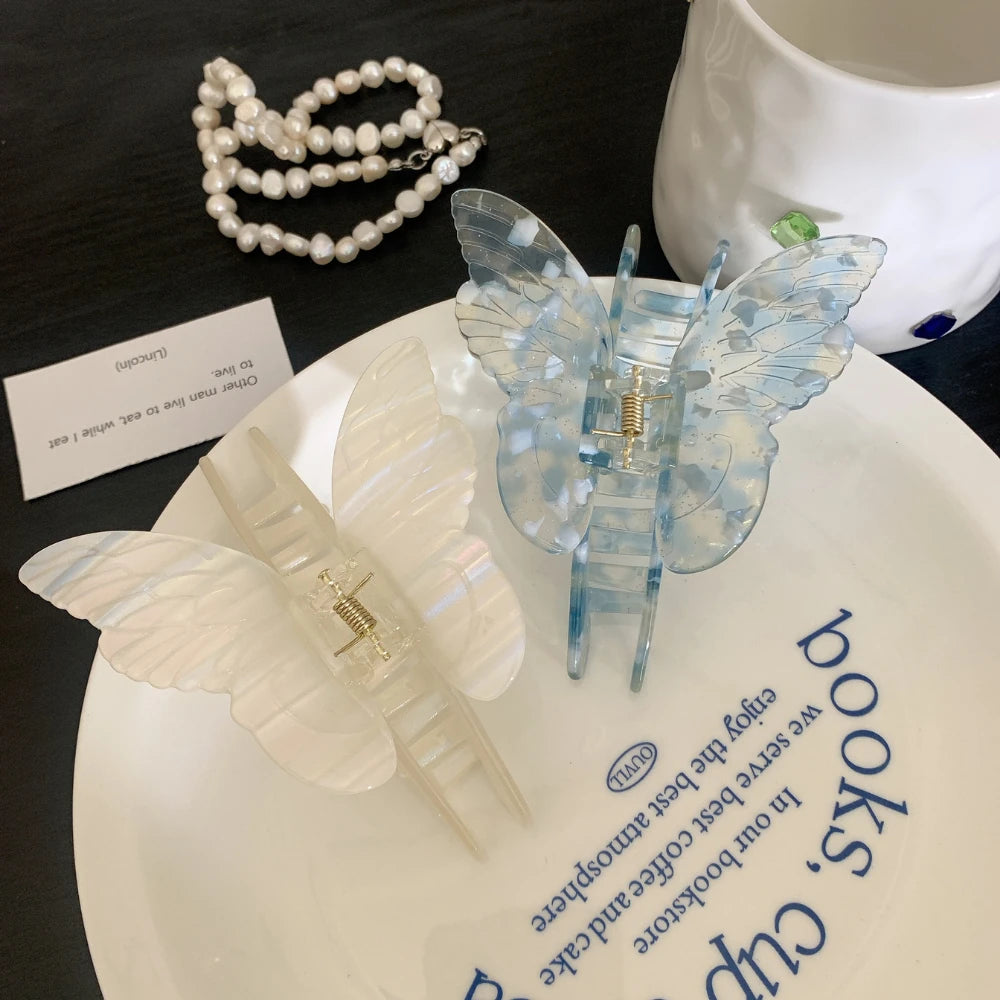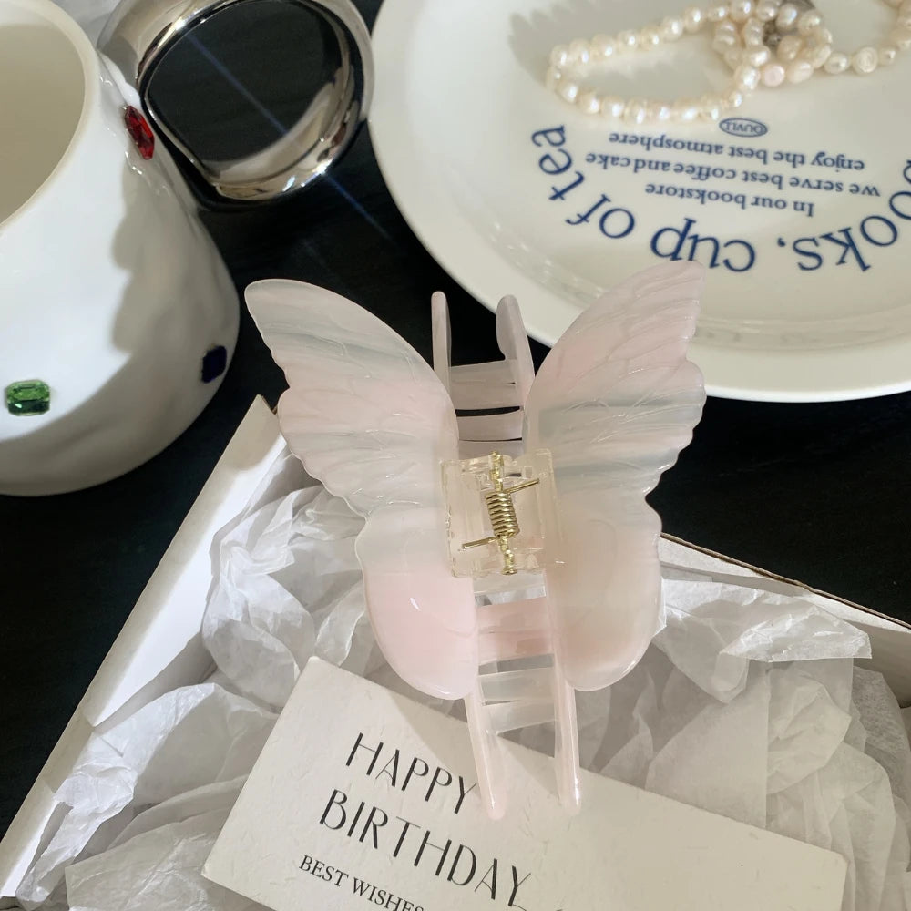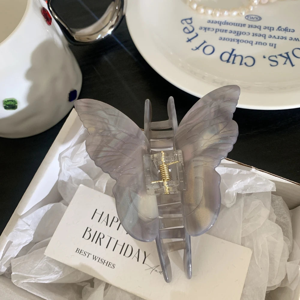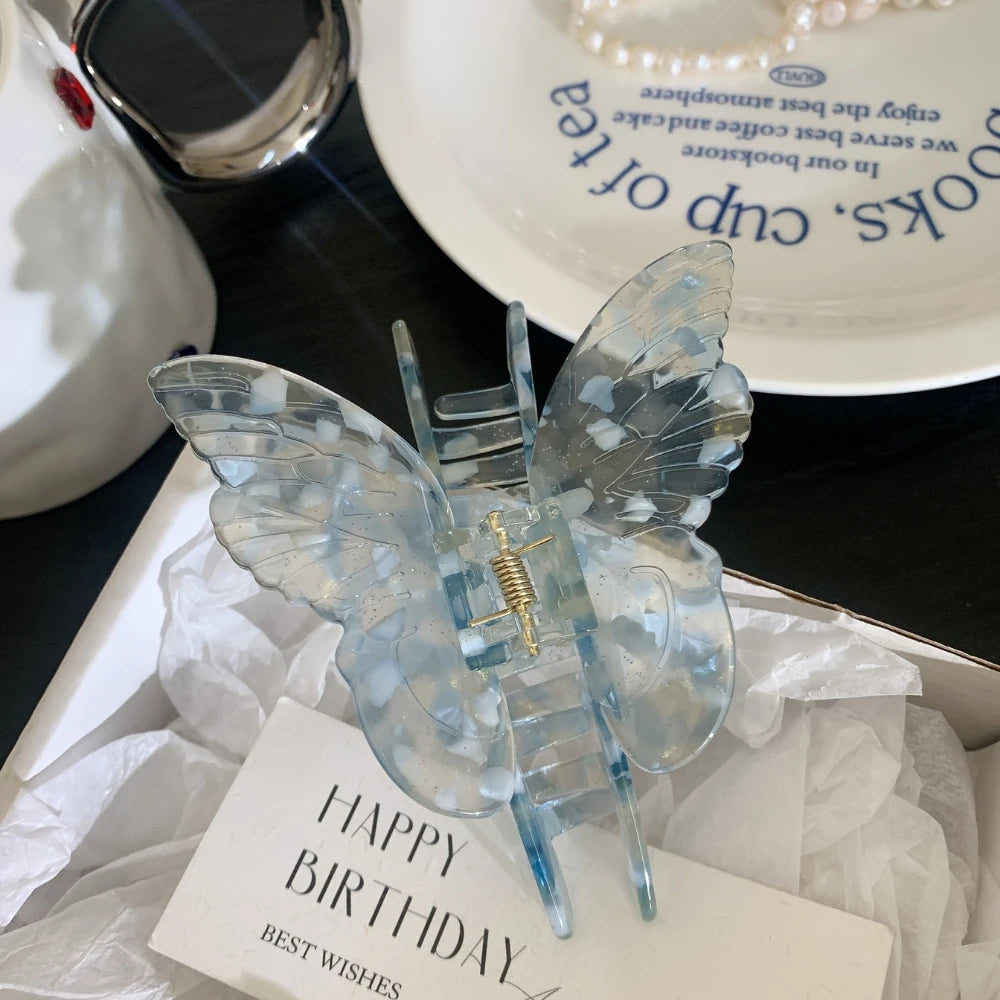 Channel your inner fairy with our mesmerizing Ethereal Butterfly Acetate Hair Claw Clip. This stunning accessory features delicately sculpted wings with a dreamy, marbled watercolor effect that catches the light like a real butterfly. Perfect for adding a touch of whimsy to a summer dress or completing a festival look, it offers a secure yet lightweight hold for all-day enchantment.