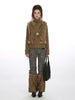 The jacket features a rich coffee brown hue, textured with intricate cable knitting. The show-stopping details are the plush faux fur panels running down the front chest, adding a luxurious, tactile contrast. Designed with a high stand collar and a sleek zip-up closure, it keeps the cold out while framing your face perfectly. The slim, slightly cropped silhouette pairs effortlessly with low-rise jeans or flared trousers for that authentic Bratz doll vibe.