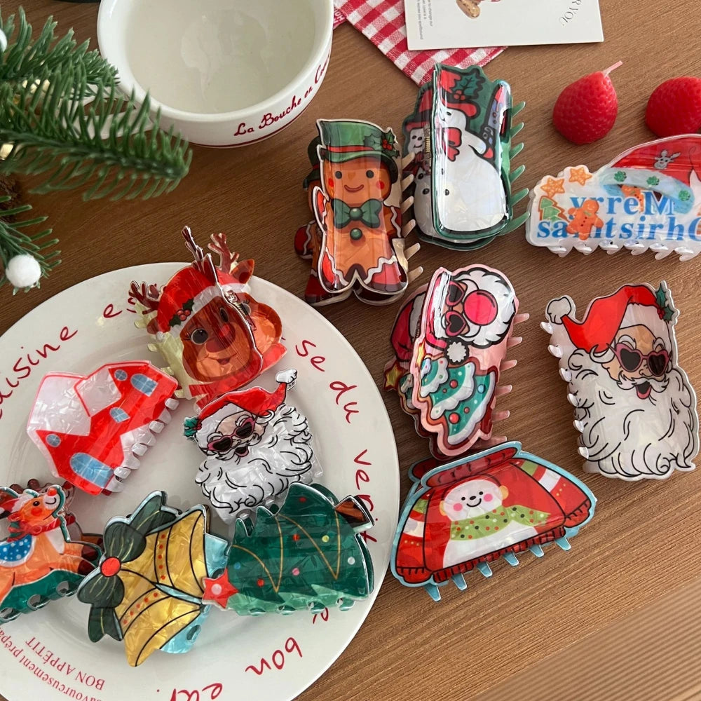 Get into the holiday spirit with our charming collection of Festive Christmas Acetate Hair Claw Clips! Whether you're attending an ugly sweater party, looking for the perfect stocking stuffer, or just want to add a touch of yuletide joy to your daily look, these clips are the perfect accessory. Crafted from high-quality cellulose acetate, they feature vibrant, nostalgic designs—from jolly Santa and Rudolph to sweet Gingerbread men—that are sure to spread cheer.