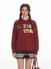 The rich cranberry red knit serves as the perfect backdrop for the playful "Christmas" block lettering, which features whimsical patterns like reindeer spots and snow. The standout detail? A charming, removable 3D crochet Christmas tree pin attached to the letter "i", adding a unique, handcrafted touch to your holiday OOTD. The relaxed, drop-shoulder silhouette gives it that effortless "borrowed" look, perfect for layering over turtlenecks or pairing with cozy leggings.