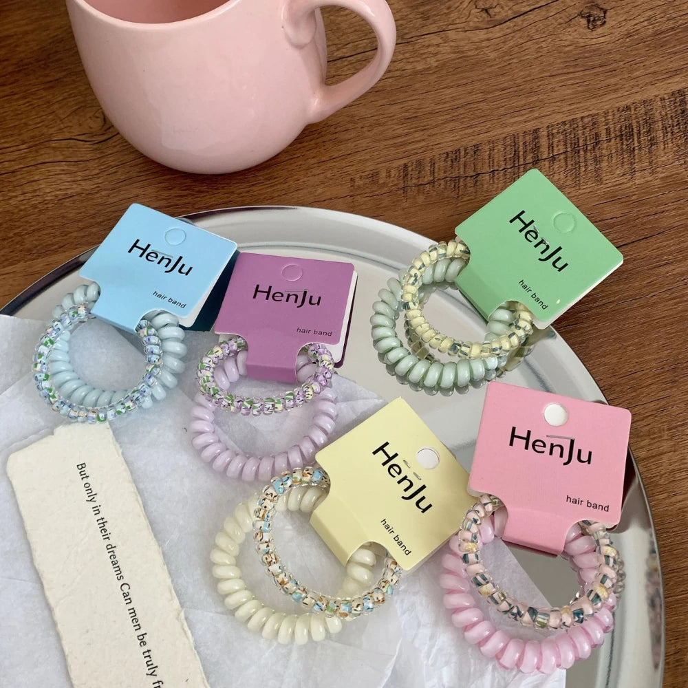 What makes this one special? A delicate, patterned core is visible through the translucent pastel "jelly" coil, adding a perfect, subtle pop of summer color. It's also completely waterproof, making it the perfect (and cutest) accessory for the beach, pool, or gym.