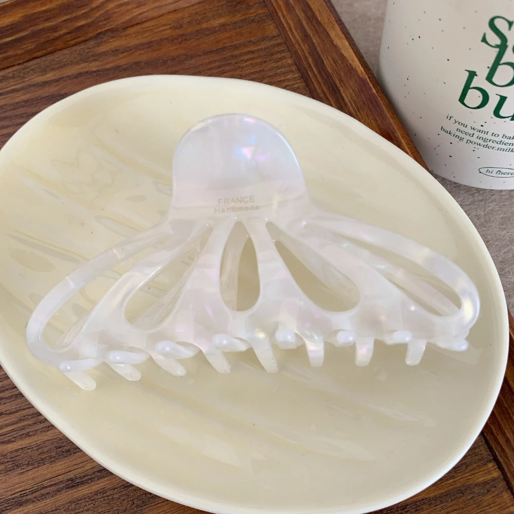 Master your thickest hair days with our Classic French Style Octopus Hair Claw Clip. Designed with a wide, curved "octopus" shape, this clip is expertly engineered to gather and secure large volumes of hair with ease. Featuring a sophisticated "France Handmade" gold imprint and a glossy, durable acetate finish, it combines professional-grade hold with timeless Parisian elegance.