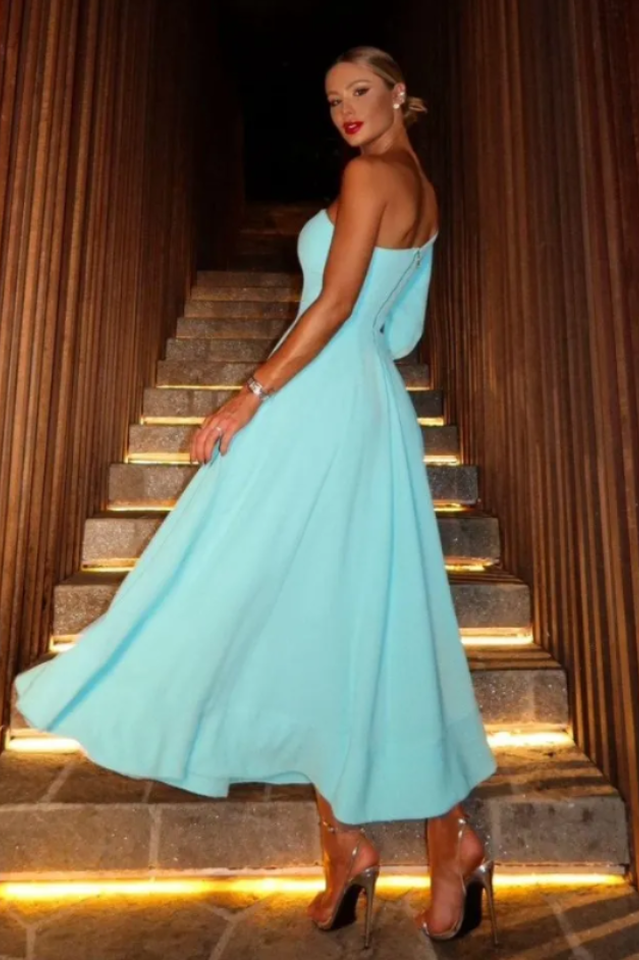 The Lea midi dress pairs a one-shoulder neckline with floral appliqu¨¦ and playful cut-outs for breezy elegance. Perfect for beach wedding guest dresses, its flattering fit and airy design make it ideal for seaside vows or resort celebrations. A chic blend of romance and modernity, crafted to stand out under sunlit skies.