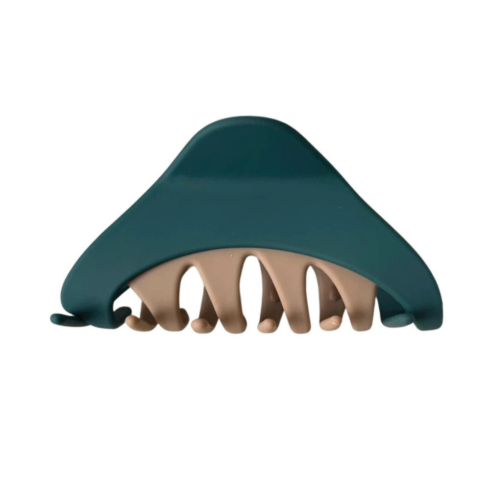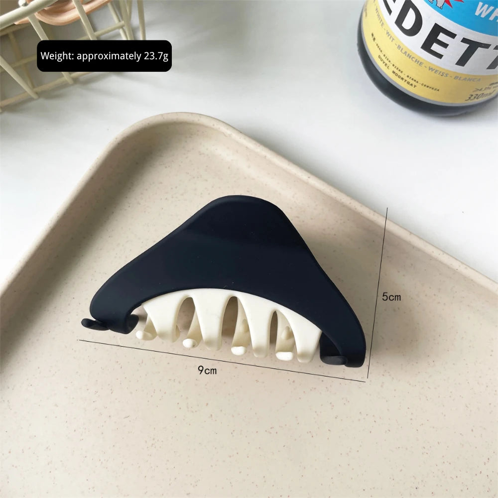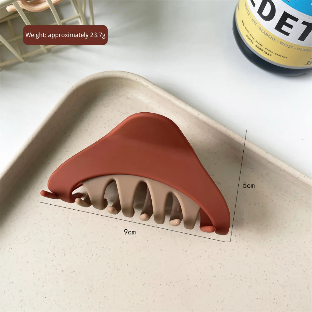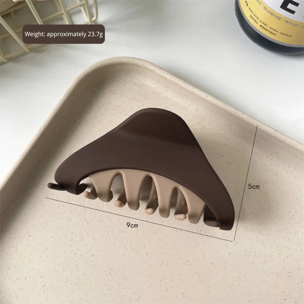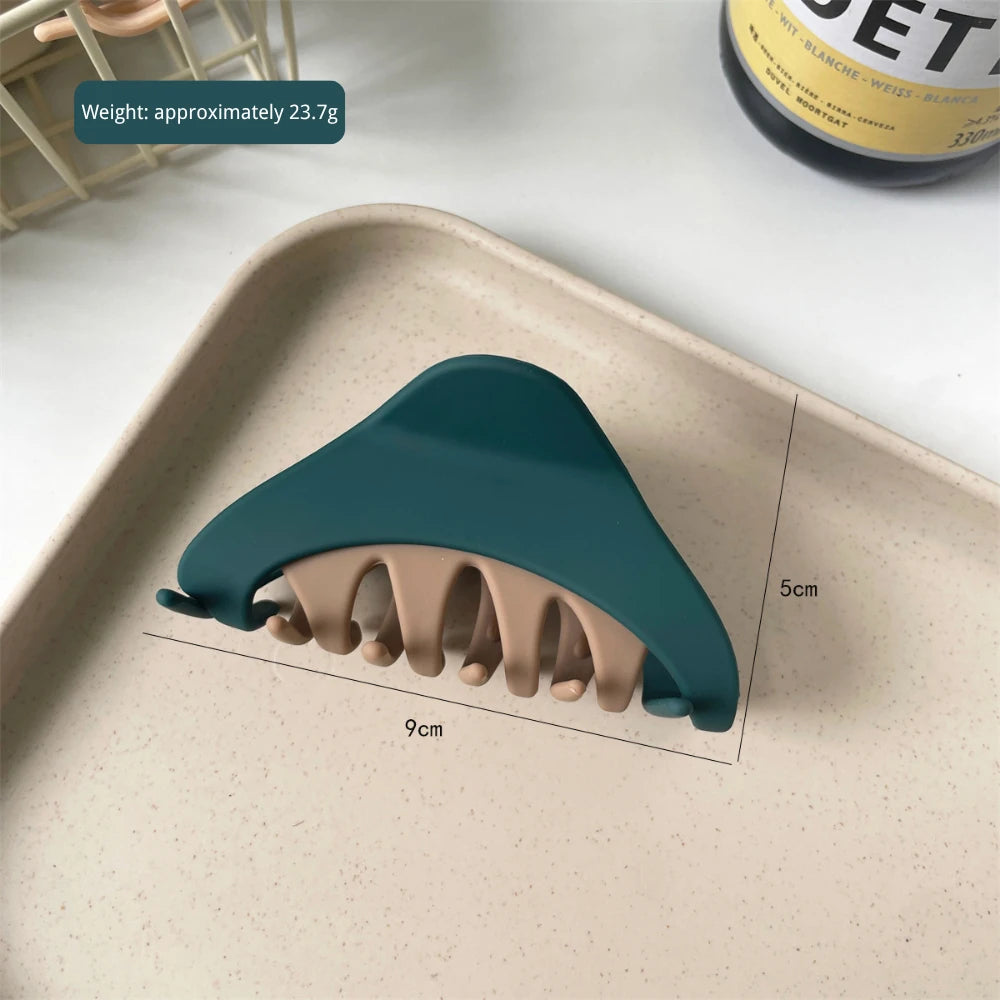Discover your new everyday essential. This minimalist triangle claw clip is the perfect fusion of modern style and function. Its unique two-tone design features a sophisticated, soft-touch matte finish on the outside, paired with contrasting neutral-toned teeth. The geometric triangle shape provides an "of-the-moment" look while the 3.5-inch size offers a strong, non-slip grip that's perfect for a chic half-updo, securing a low bun, or managing medium-thickness hair all day.