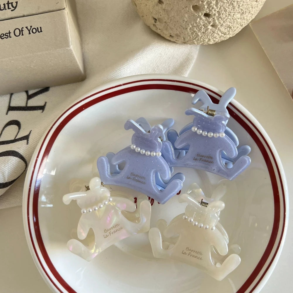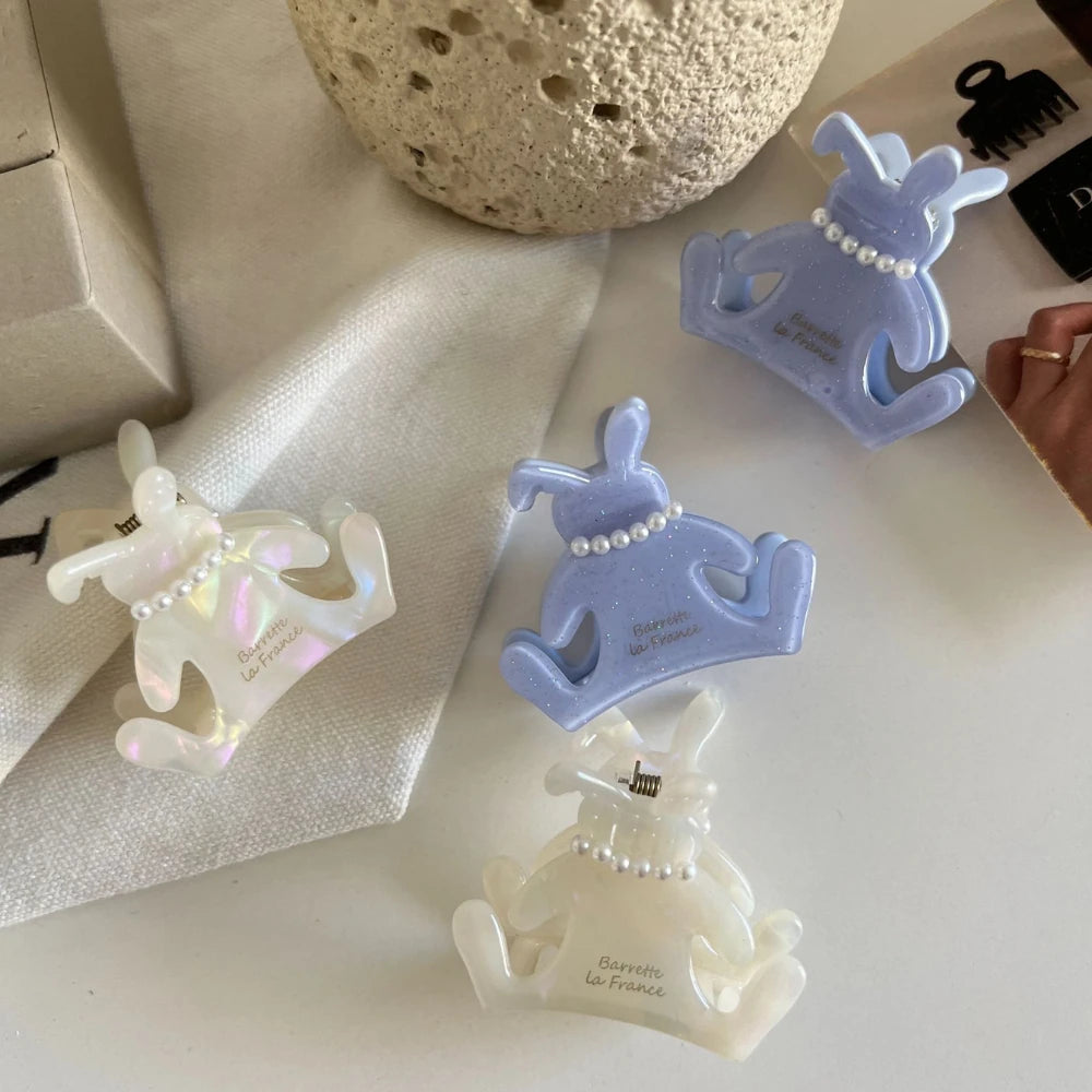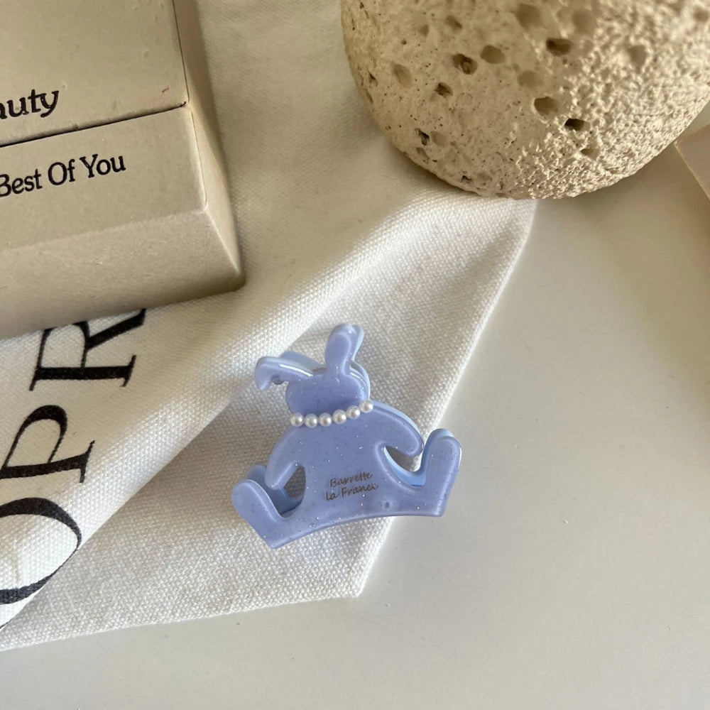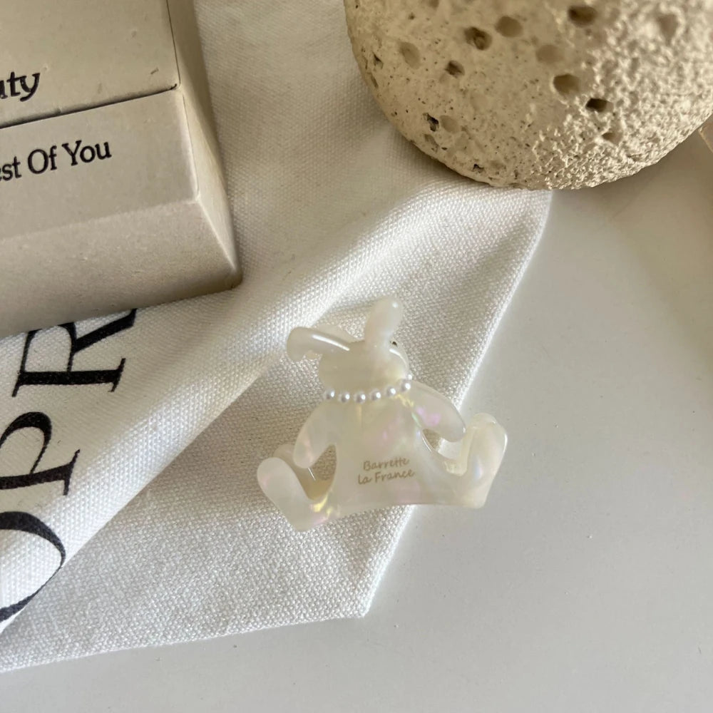 Add a touch of dainty, "coquette" charm to your look with our sweet Pearl Bunny Hair Claw. This 2-inch mini clip is crafted from premium, pearlescent cellulose acetate and features an adorable, tiny faux pearl necklace. It's the perfect, sophisticated little detail for securing your bangs, accenting a braid, or creating an elegant, preppy half-up style.
