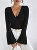 The true star of the show is the dramatic bell sleeve (horn sleeve) design, adding a touch of vintage-inspired movement to every gesture. Crafted from a slimming vertical ribbed knit, the fabric hugs your curves in all the right places before flaring out at the cuffs, creating a balanced and hourglass-enhancing shape. Perfect for a date night or elevating your daily denim.