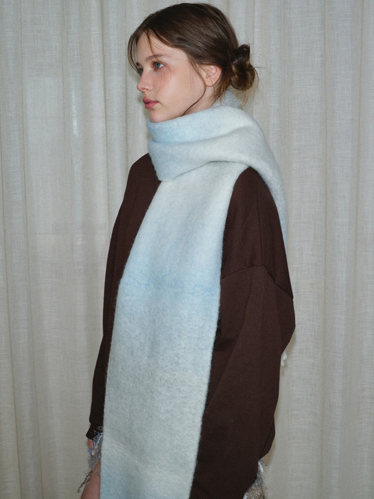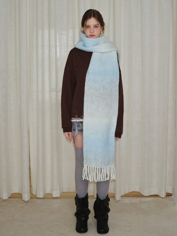 Bring a dreamy, artistic touch to your winter wardrobe with this stunning ombré gradient scarf. Inspired by winter sunsets and aurora skies, the seamless color transition adds a soft "main character" energy to any outfit. Weighing in at a substantial 270g, it offers superior warmth and a plush, brushed texture that feels like a warm hug. The extra-long design allows for voluminous wrapping, making it the perfect statement piece for snowy days and holiday photos.