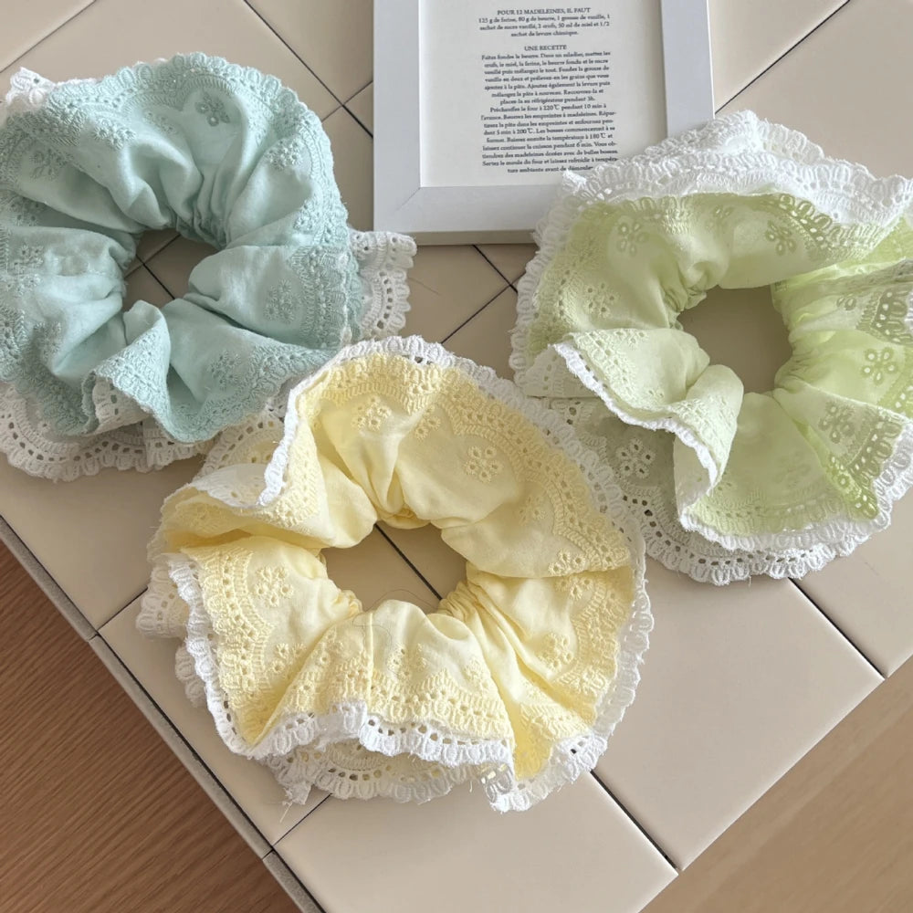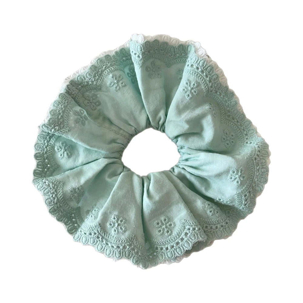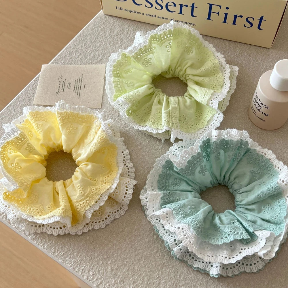 This is the ultimate "Coquette" and "Cottagecore" dream accessory. Our Oversized Lace & Eyelet Scrunchie is designed to be a cloud-like statement of feminine charm. Crafted with intricate layers of delicate lace and soft, embroidered eyelet fabric, it adds a touch of romantic, artisanal flair. At a massive 6.3 inches, it creates stunning, airy volume, yet at only 21g, it's featherlight—providing a gentle, all-day hold that won't pull, snag, or weigh your hair down.