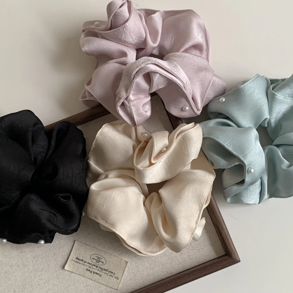 This isn't just a hair tie; it's a piece of everyday luxury. Our Oversized Pearl Satin Scrunchie is crafted from a substantial, heavyweight (39g) liquid-satin fabric that is exceptionally gentle on hair. Designed to add elegant, effortless volume, it's finished with dainty faux pearls for a touch of "Quiet Luxury." This scrunchie is built with a strong elastic to provide a secure, all-day hold without creases or breakage.