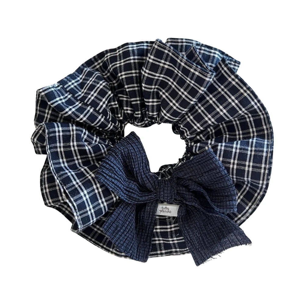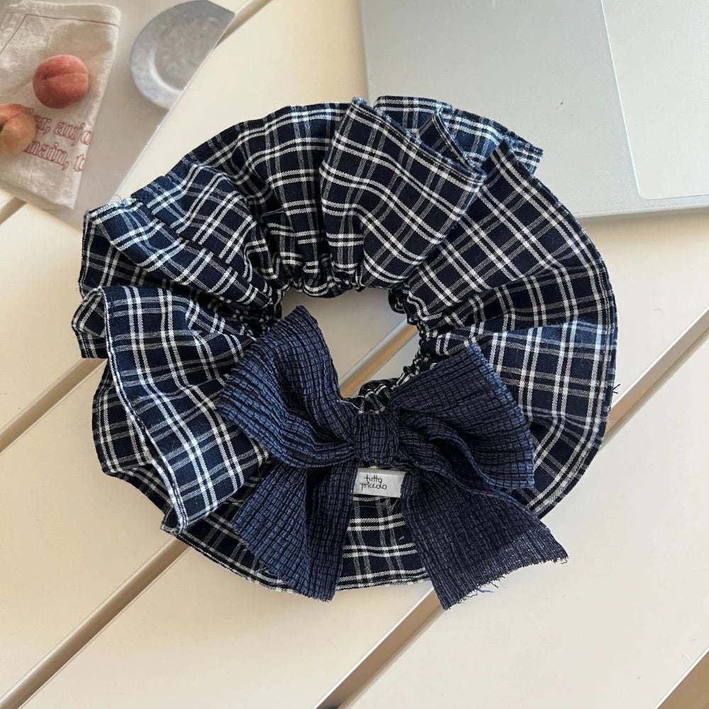 Capture that timeless, back-to-school charm. This Oversized Preppy Plaid Scrunchie is crafted from a soft, woven fabric and accented with a unique, textured bow for a touch of classic American style. At 5.9 inches, it's designed to make a statement, adding effortless volume to a high ponytail or a chic, low bun while being incredibly gentle on your hair.