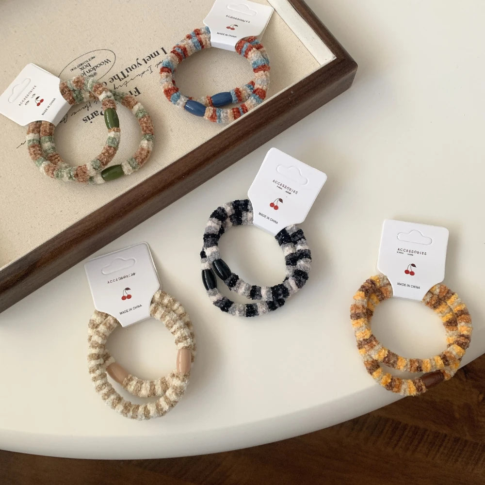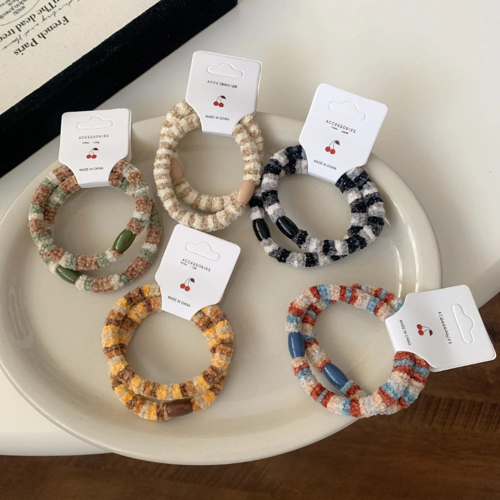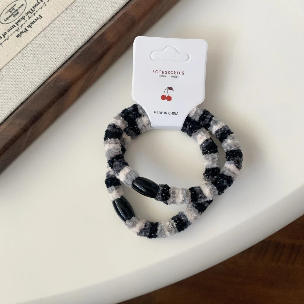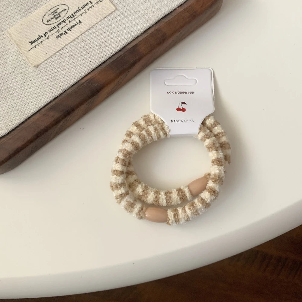 Crafted from an ultra-soft, seamless "towel" knit (terry cloth) fabric, these elastics are incredibly gentle on all hair types. They glide in and out of your hair smoothly, preventing breakage and ponytail headaches. Despite their soft texture, the high-elasticity core provides a surprisingly strong, non-slip grip that's perfect for a high ponytail or messy bun.