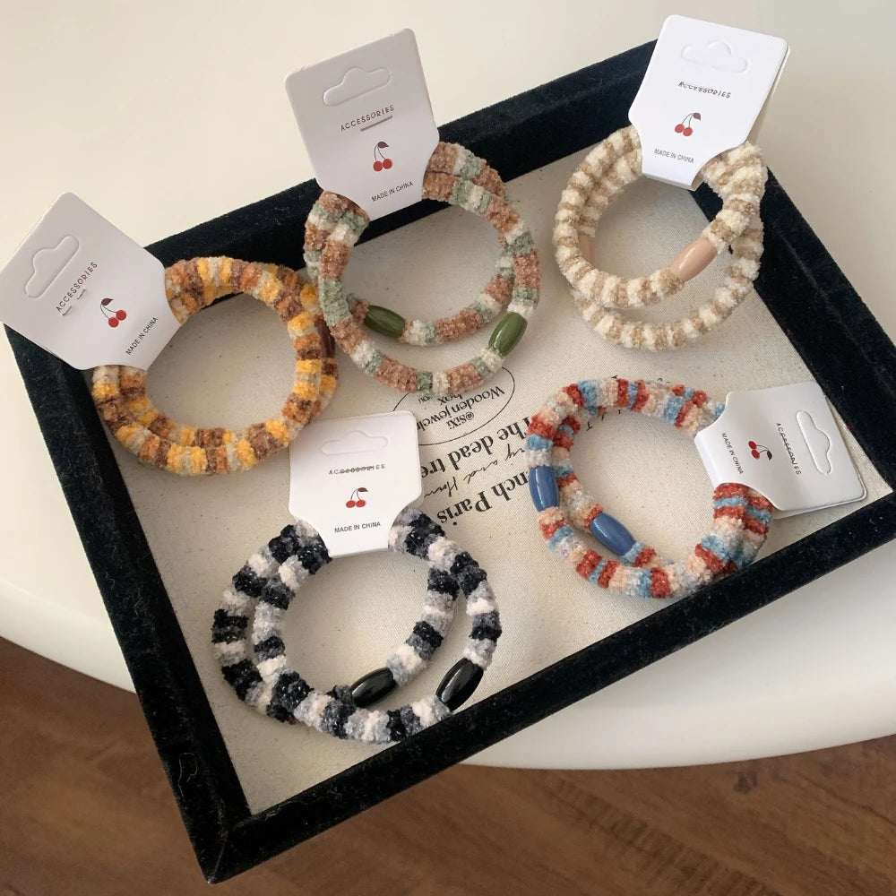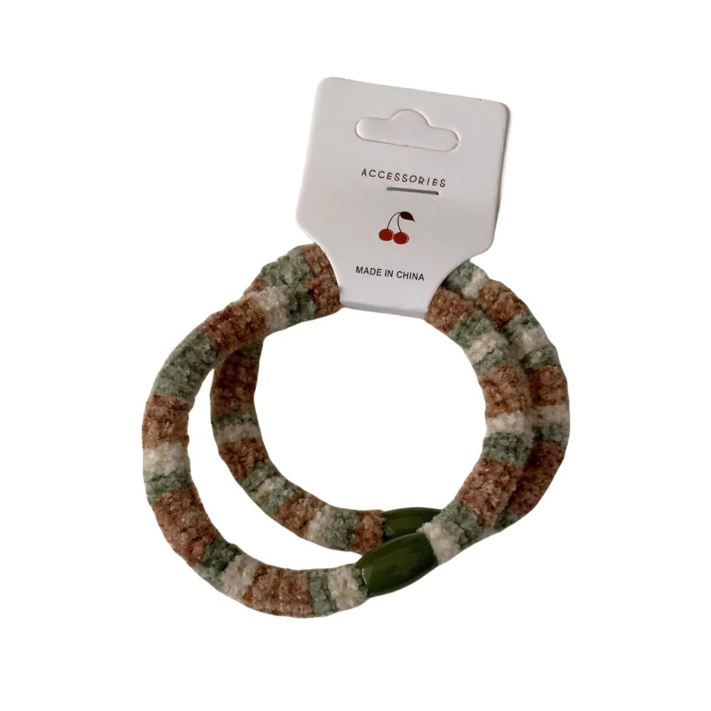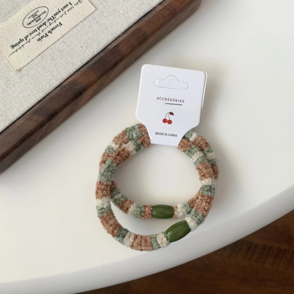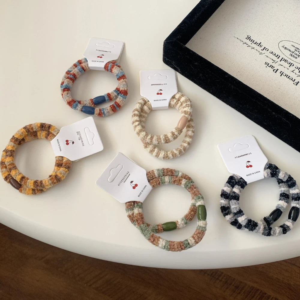 Crafted from an ultra-soft, seamless "towel" knit (terry cloth) fabric, these elastics are incredibly gentle on all hair types. They glide in and out of your hair smoothly, preventing breakage and ponytail headaches. Despite their soft texture, the high-elasticity core provides a surprisingly strong, non-slip grip that's perfect for a high ponytail or messy bun.