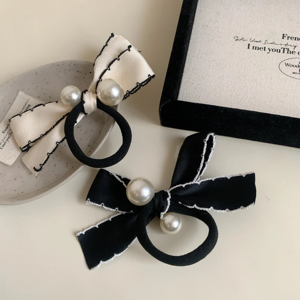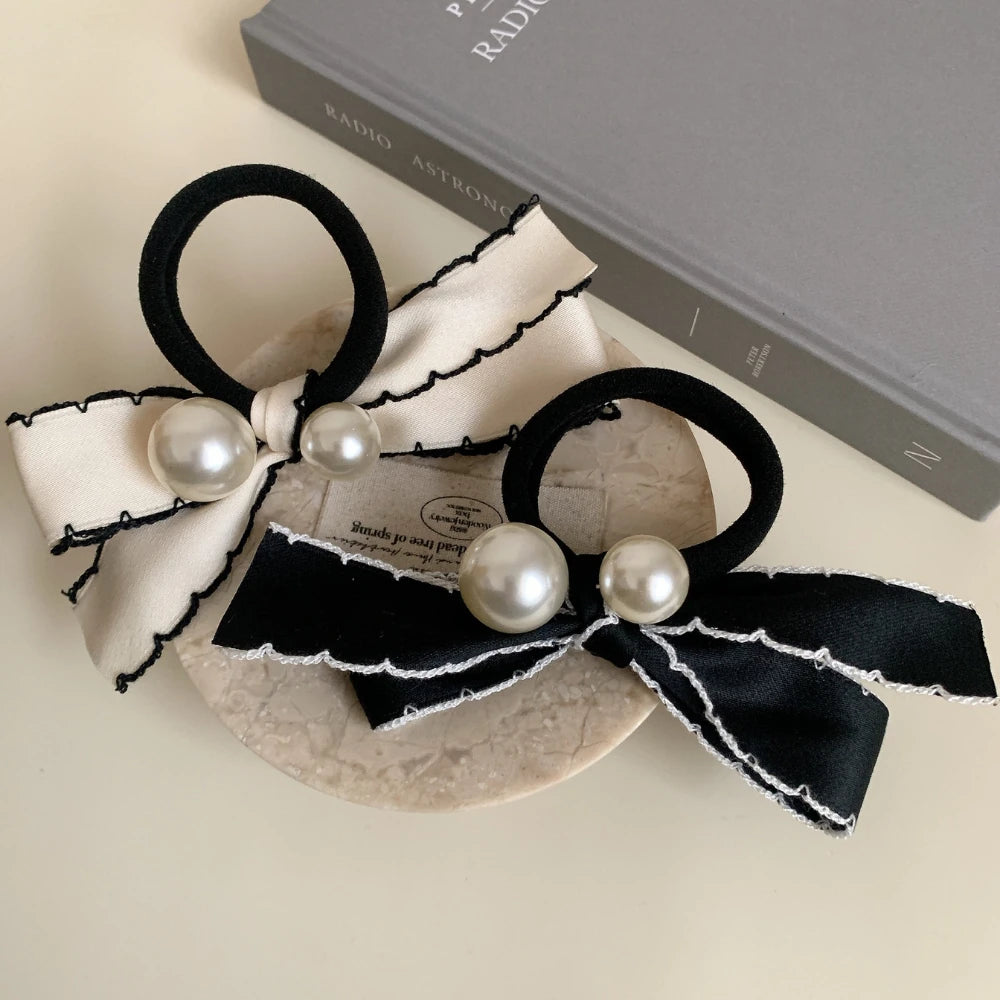 It’s all in the details: a structured, 4.5-inch bow is accented with a delicate contrast stitch edge and adorned with two classic, luminous pearls. It's the perfect finishing touch of "quiet luxury." This isn't just a pretty accessory; it's built on an exceptionally durable, high-stretch, and completely metal-free elastic. It provides a strong, all-day hold that is 100% snag-free, ouch-less, and gentle on your hair.