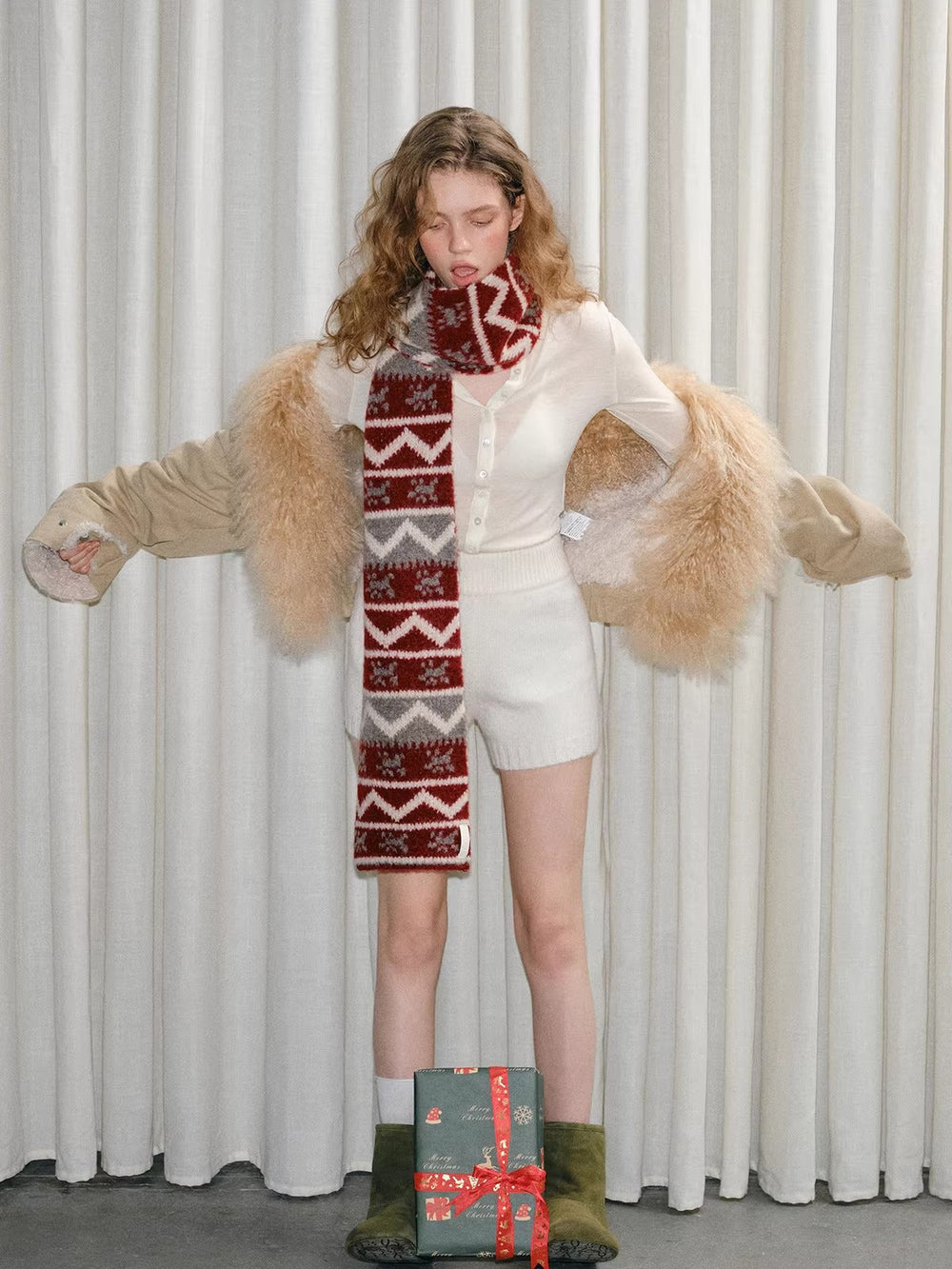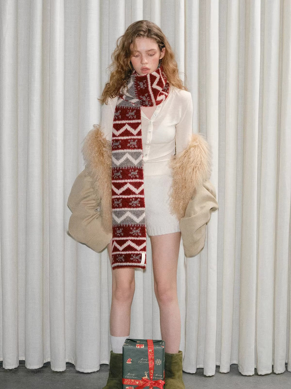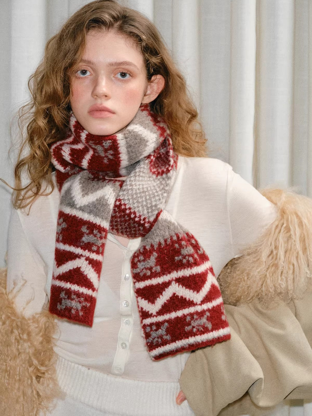Capture the spirit of the holidays with this Red Fair Isle Pattern Chunky Knit Scarf. Designed with a traditional Nordic-inspired geometric print, this "Christmas Red" accessory creates a cozy, festive atmosphere. The thickened knit construction ensures maximum warmth during cold winter days, making it the perfect versatile neck warmer for seasonal outings and gifts.