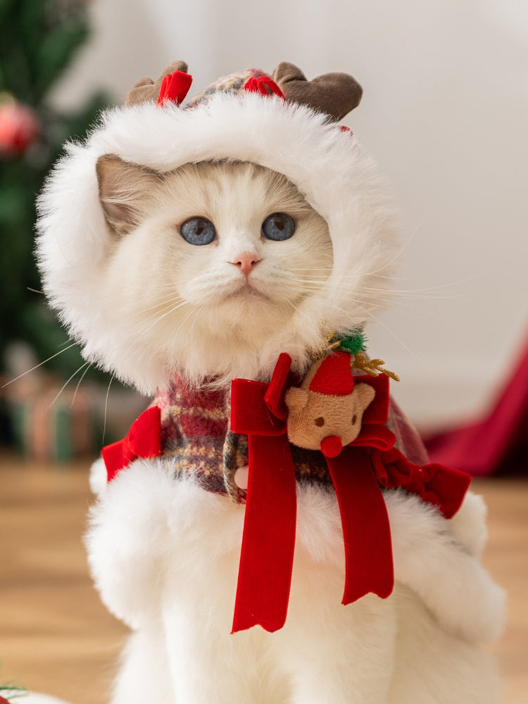 Get your feline friend ready for the holidays with this festive Red Plaid Christmas Pet Cape. Specifically designed for cats who dislike restrictive sleeves (like Devon Rex or Sphynx), this fleece-lined cloak offers warmth and freedom of movement. Featuring a classic holiday tartan pattern and a built-in leash D-ring, it is the perfect outfit for New Year celebrations and winter walks.