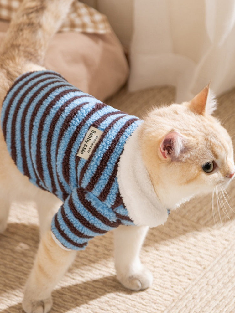 Keep your pet warm without the bulk with this Red Striped Polar Fleece Vest. Designed with a minimalist aesthetic, this two-legged pullover features a classic red and white stripe pattern. Crafted from soft, thermal polar fleece, it provides essential insulation, making it an ideal choice for hairless cat breeds (like Sphynx and Devon Rex) or small dogs during chilly autumn and winter days.