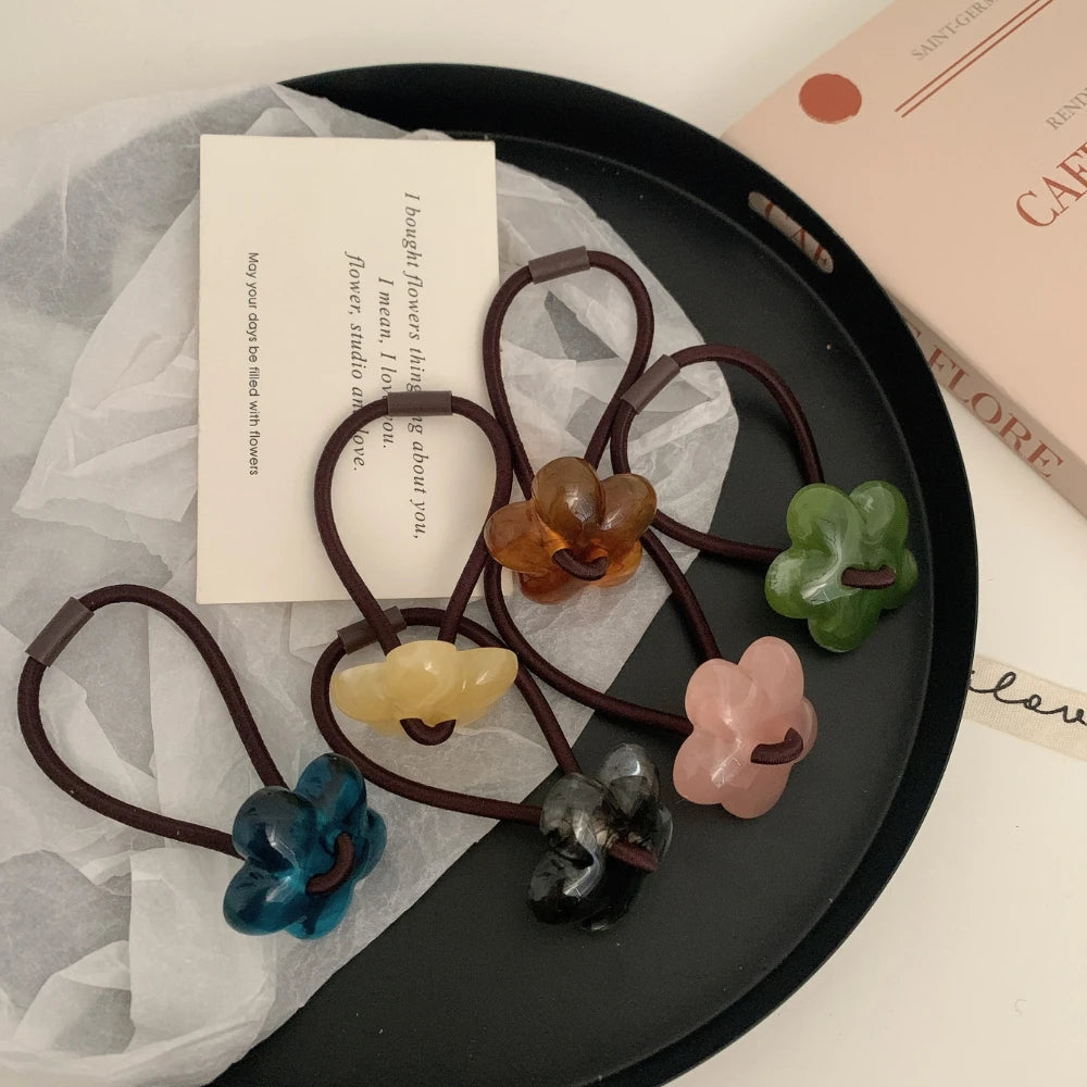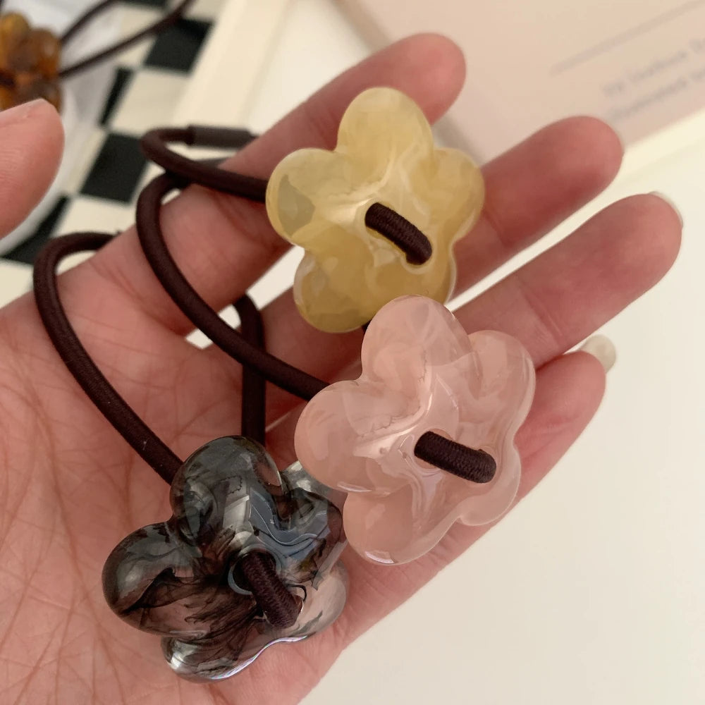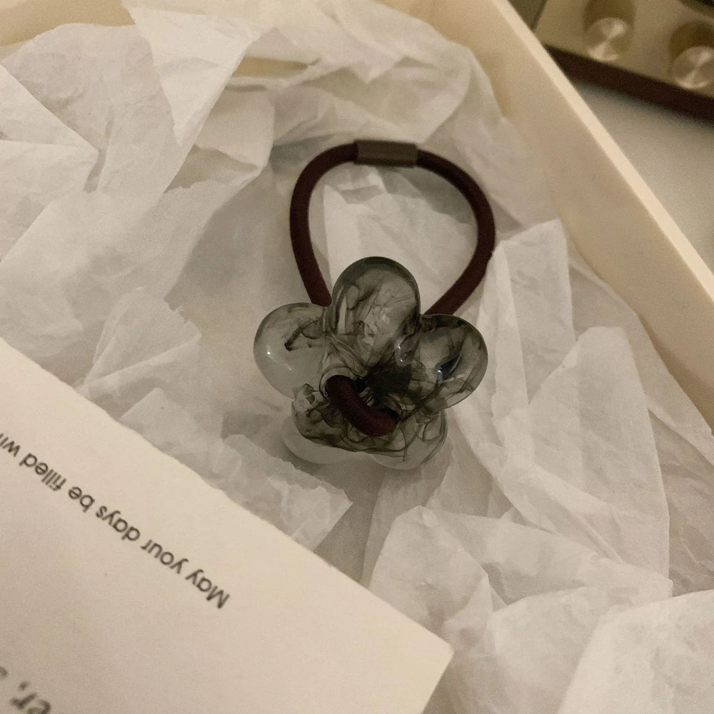 Add a perfect pop of retro-chic to your ponytail or bun. This isn't a basic elastic; it's a stylish accessory featuring a 1.25-inch (3.2cm) flower charm, crafted from high-quality, polished cellulose acetate for a deep, marbled look.
