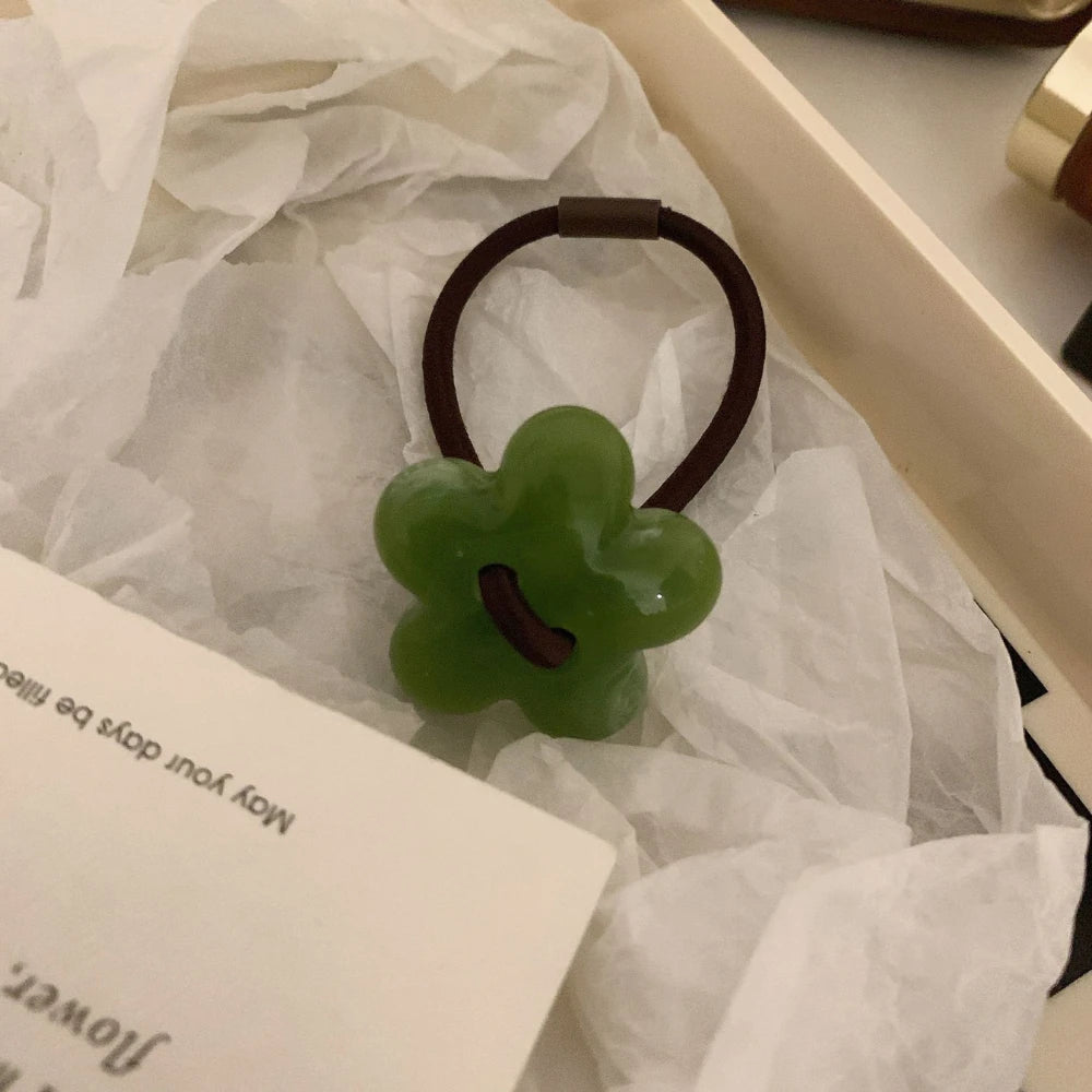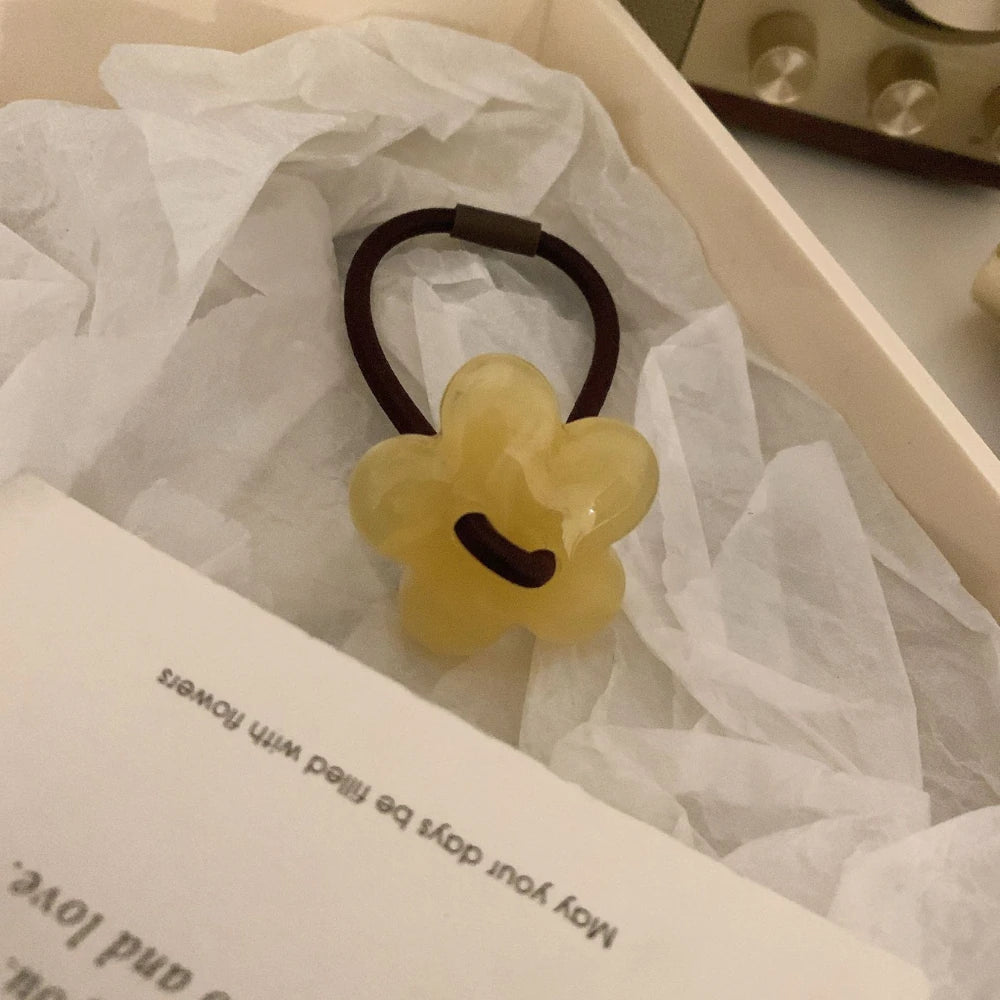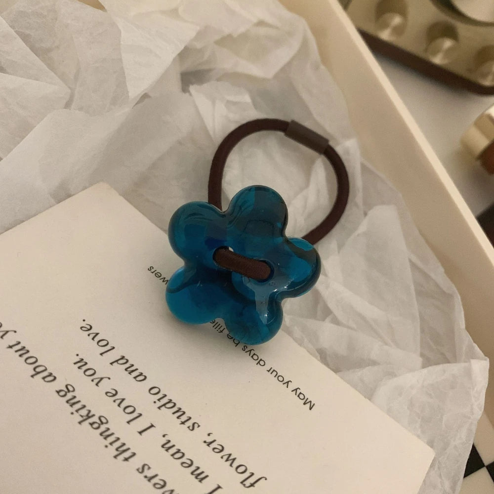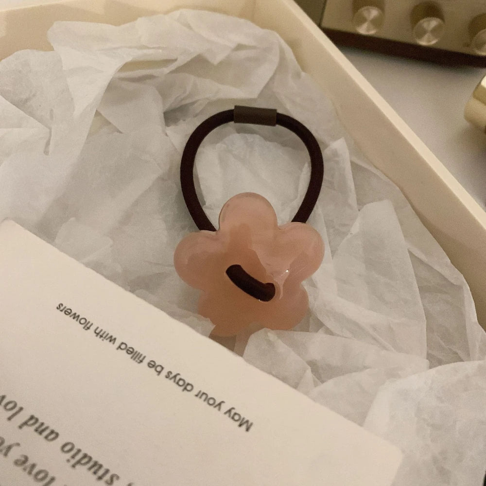 Add a perfect pop of retro-chic to your ponytail or bun. This isn't a basic elastic; it's a stylish accessory featuring a 1.25-inch (3.2cm) flower charm, crafted from high-quality, polished cellulose acetate for a deep, marbled look.