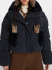 The jacket features a dense, insulated fill to lock in heat, while the stand-up collar is lined with ultra-soft sherpa fleece to keep your neck cozy without a scarf. Distinctive details like the fuzzy sherpa patch pockets and the boxy, oversized fit give it a unique, textured look. Equipped with an adjustable bungee drawstring hem, you can cinch it at the waist to create a bubble shape that pairs perfectly with high-waisted corduroys or baggy joggers.