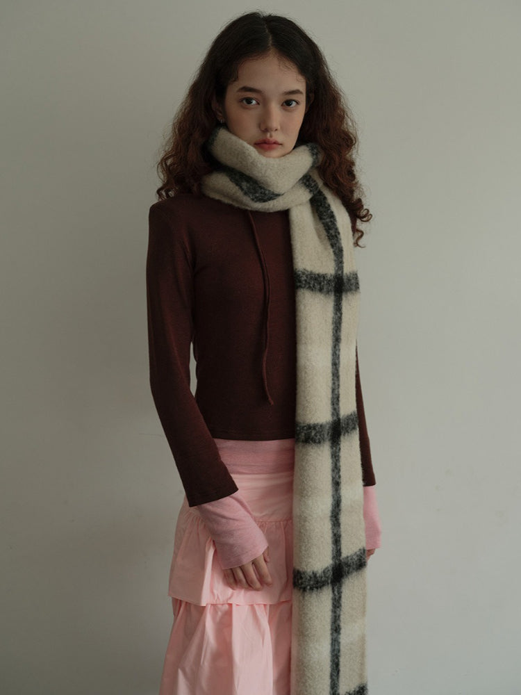 This scarf defines the "Warm Tone" winter aesthetic. The classic beige background accented with bold black windowpane checks channels a sophisticated "Old Money" vibe, while its oversized silhouette makes it perfect for the trending "Coquette" or "Balletcore" styling. Whether draped over a ruffled skirt and leg warmers or paired with a classic camel coat, it adds a layer of vintage charm and cozy elegance to any outfit.