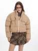 Wear the Camel Beige Puffer side out for a windproof, modern look that pairs perfectly with denim and boots. Flip it inside out to reveal the plush White Sherpa side, transforming your outfit into a cozy, texture-rich ensemble. The oversized, boxy fit and high stand collar ensure you stay warm and stylish, no matter which side you choose.