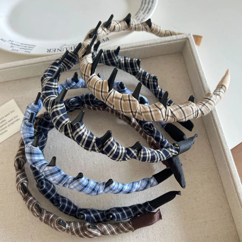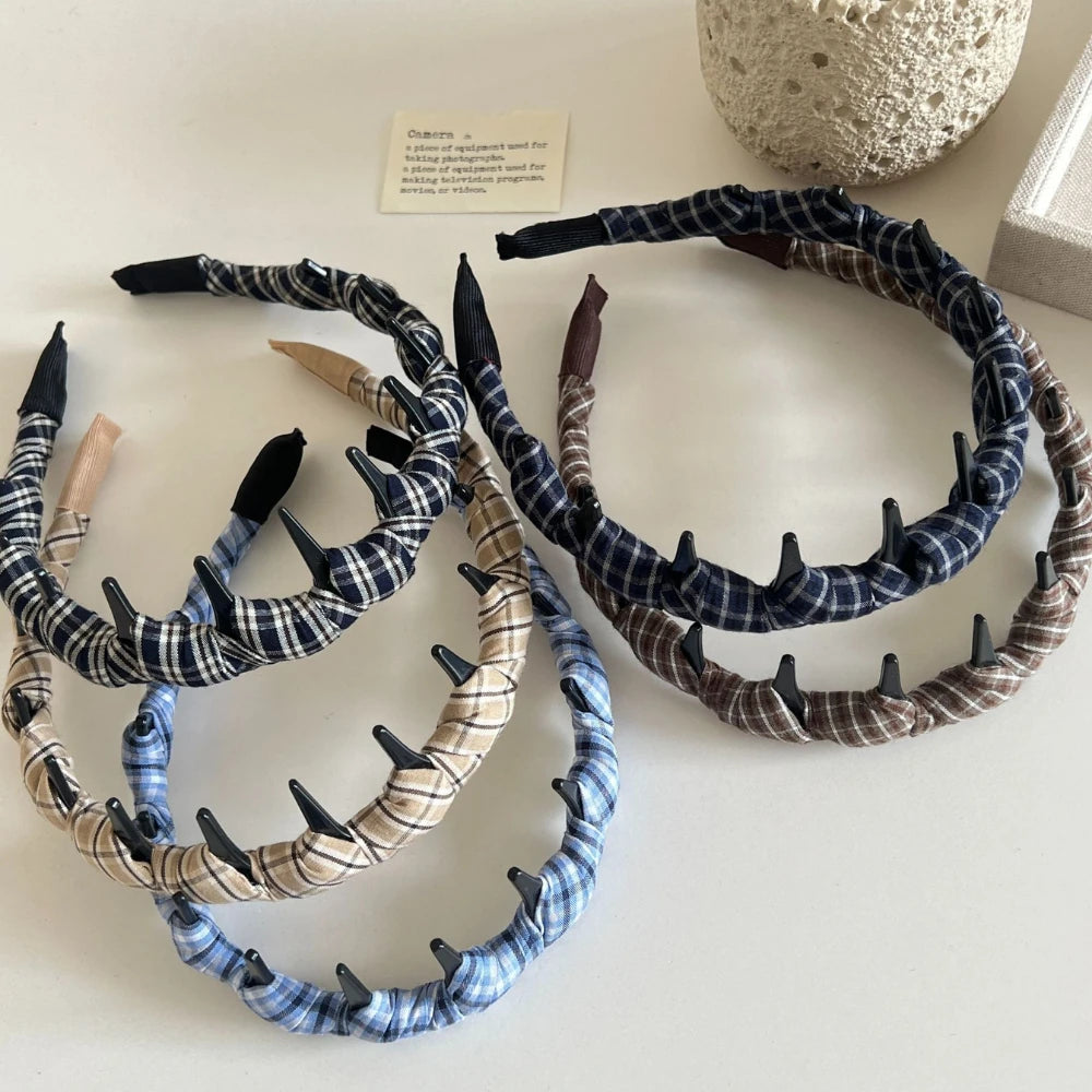 The perfect blend of classic preppy style and stay-put function. This isn't just a cute plaid headband; it's designed with inner teeth to actually hold your hair back, comfortably, all day long.