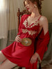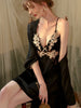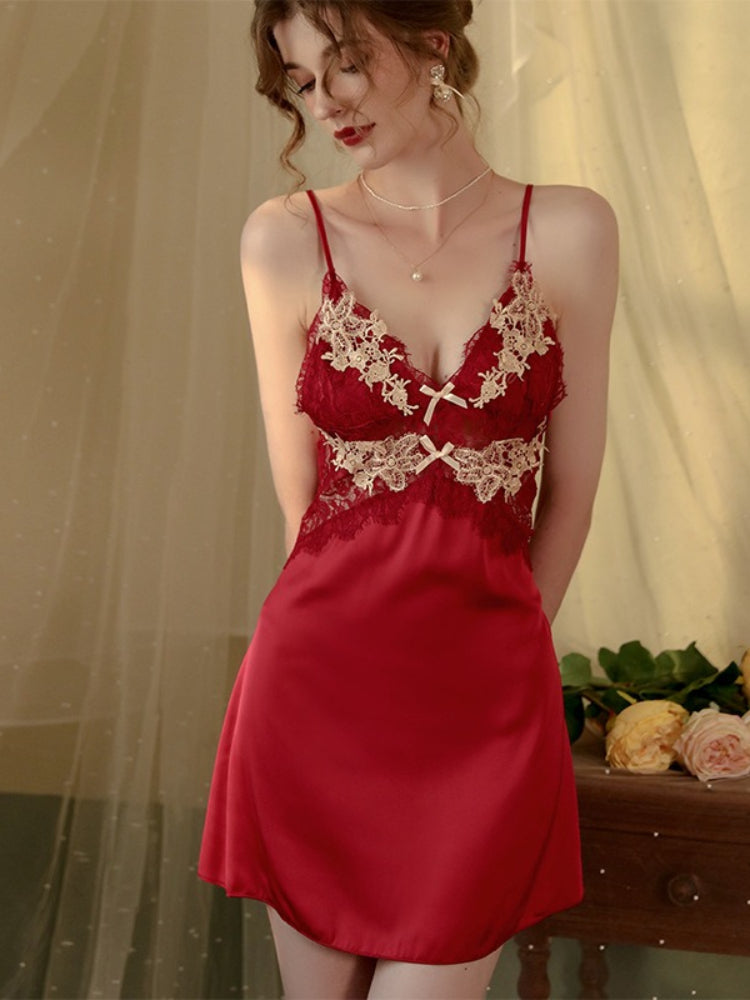 The centerpiece is a mesmerizing slip dress crafted from premium "Ice Silk" satin that feels cool and fluid against your skin. It features a bodice adorned with intricate, nude-toned floral lace and a daring open back with delicate crisscross straps. The matching robe offers a layer of sophisticated modesty, perfect for slow mornings or romantic evenings. With built-in chest pads, you get the freedom of going braless while maintaining a beautifully sculpted silhouette.