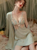 Immerse yourself in the serene elegance of this Sage Green Satin Lace Nightgown & Robe Set. Inspired by the "Coquette" aesthetic and the freshness of spring, this set combines vintage charm with modern comfort.