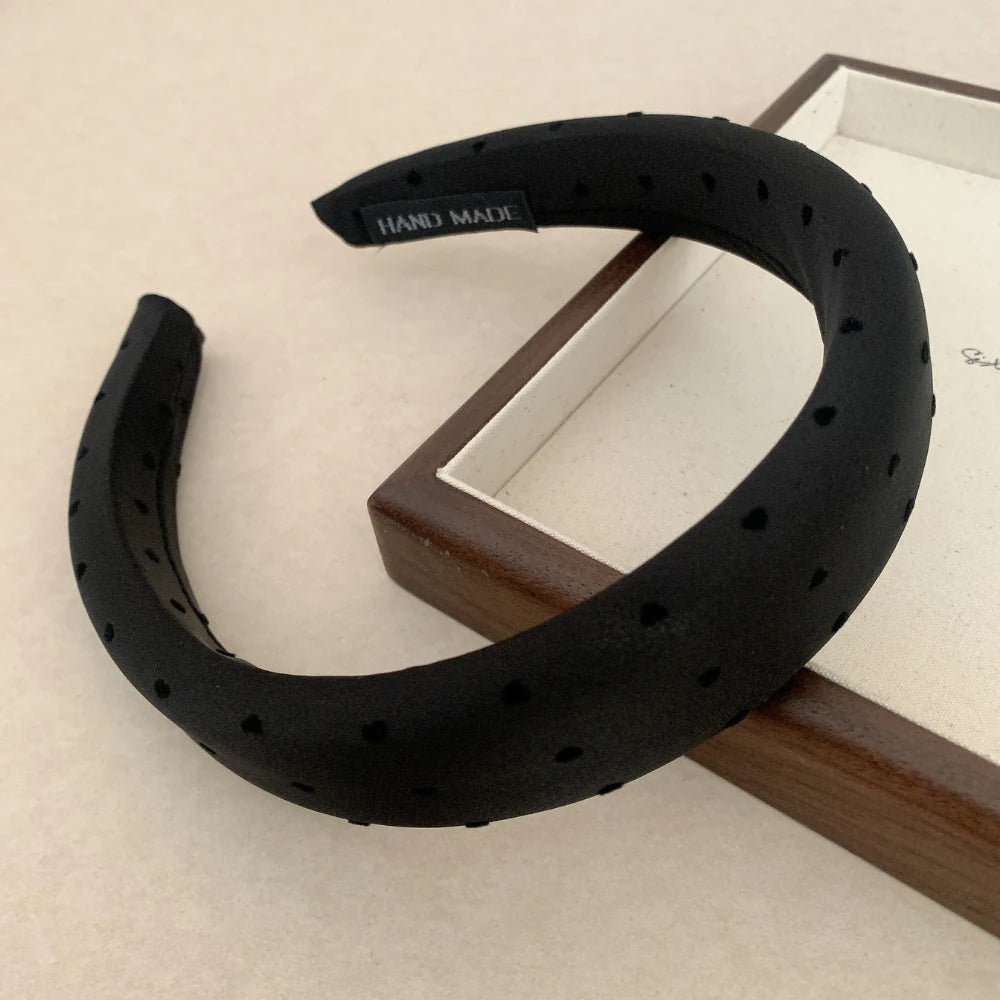 Capture that perfect sweet-meets-chic vibe with our Satin Padded Headband. This accessory is all about playful sophistication, featuring a smooth, lustrous satin fabric dotted with dainty mini hearts. It's designed with 1.2 inches (3cm) of comfortable padding to give you an effortless volumizing lift, creating that sought-after "high cranial top" silhouette. At only 28g, it’s light enough for all-day wear, giving you a major style upgrade without the headache. Perfect for nailing the Coquette or Y2K aesthetic.