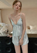 Capture the magic of the "Fairycore" aesthetic with our Celestial Butterfly Satin Pajama Set. This dreamy two-piece ensemble features a soft, powder-blue canvas adorned with shimmering silver foil butterflies that catch the light with every movement, channeling the nostalgic charm of Y2K fashion.