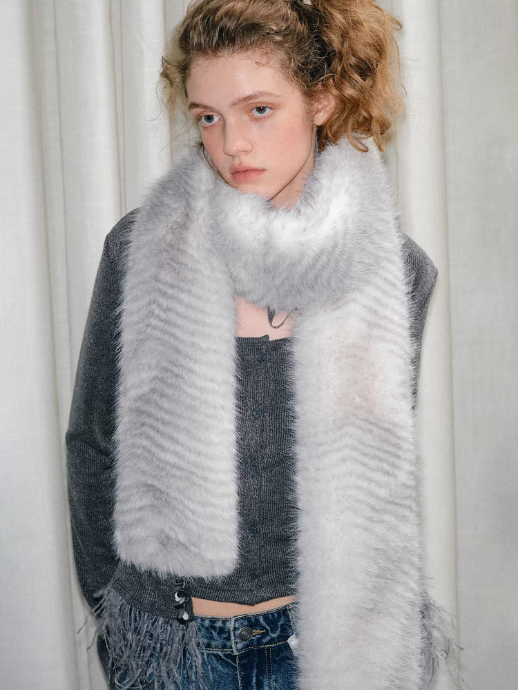 Elevate your winter outerwear with this luxurious Silver Snow Faux Fur Scarf. Designed with a plush, voluminous texture that mimics the look of silver fox fur, this accessory is 100% cruelty-free. Its extra-long length allows for versatile styling, whether draped loosely or wrapped multiple times for maximum insulation against the cold. The distinctive silver and white striped pattern adds a touch of elegance to any coat or jacket.