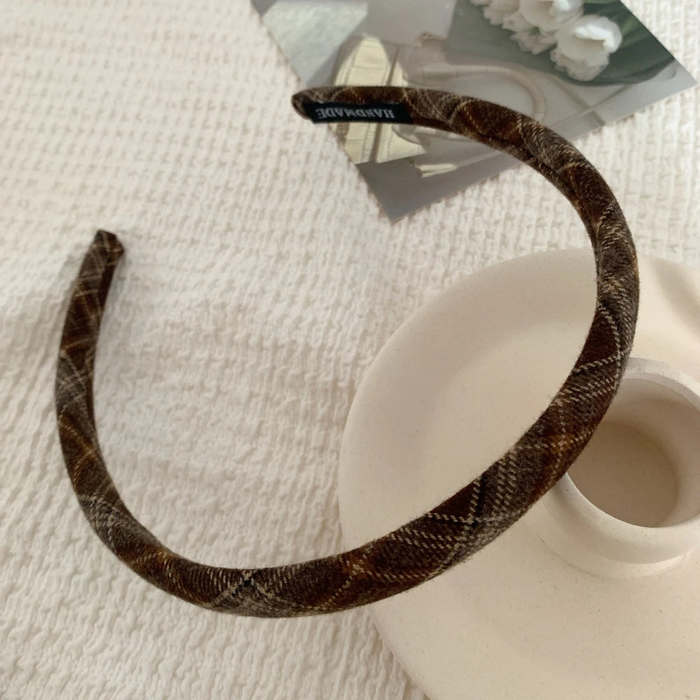 Discover your new everyday favorite. This Classic Plaid Headband is the perfect subtle accessory for that timeless "Academia" or "Preppy" look. Wrapped in a soft, brushed fabric featuring rich, autumnal plaid, it adds an instant touch of intellectual charm. Its true magic is its barely-there feel. Weighing only 18 grams and featuring a slim 0.6-inch (1.5cm) padding, this headband provides a secure, all-day fit without the pinch, pressure, or headache. It’s effortless, comfortable, and enduringly chic.
