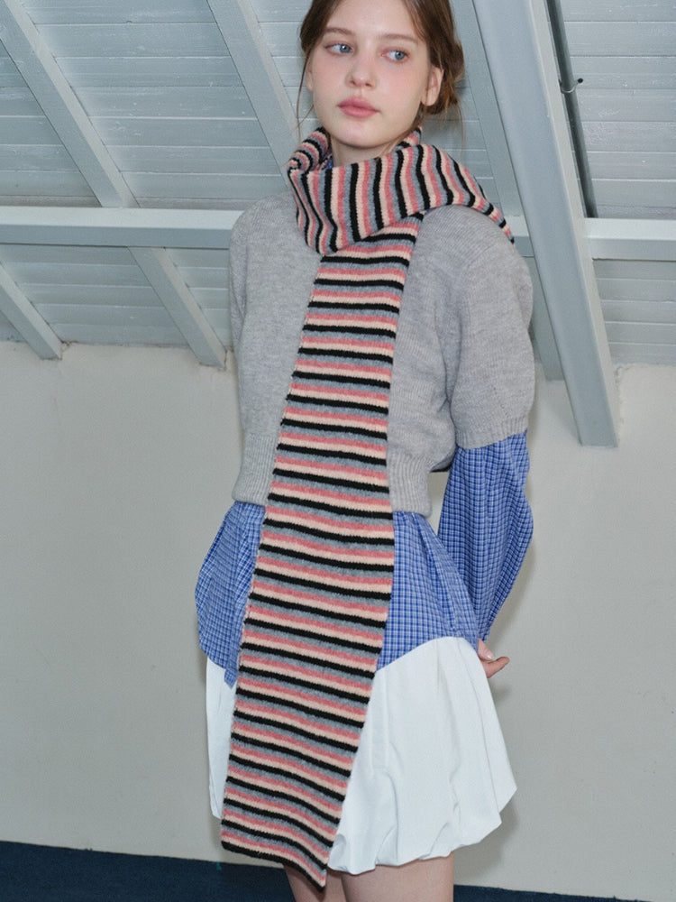 Add a playful pop of color to your winter layers with our Striped Wool Blend Skinny Scarf. Channeling a nostalgic Y2K vibe mixed with modern Korean street style, this accessory is designed for the fashion-forward.