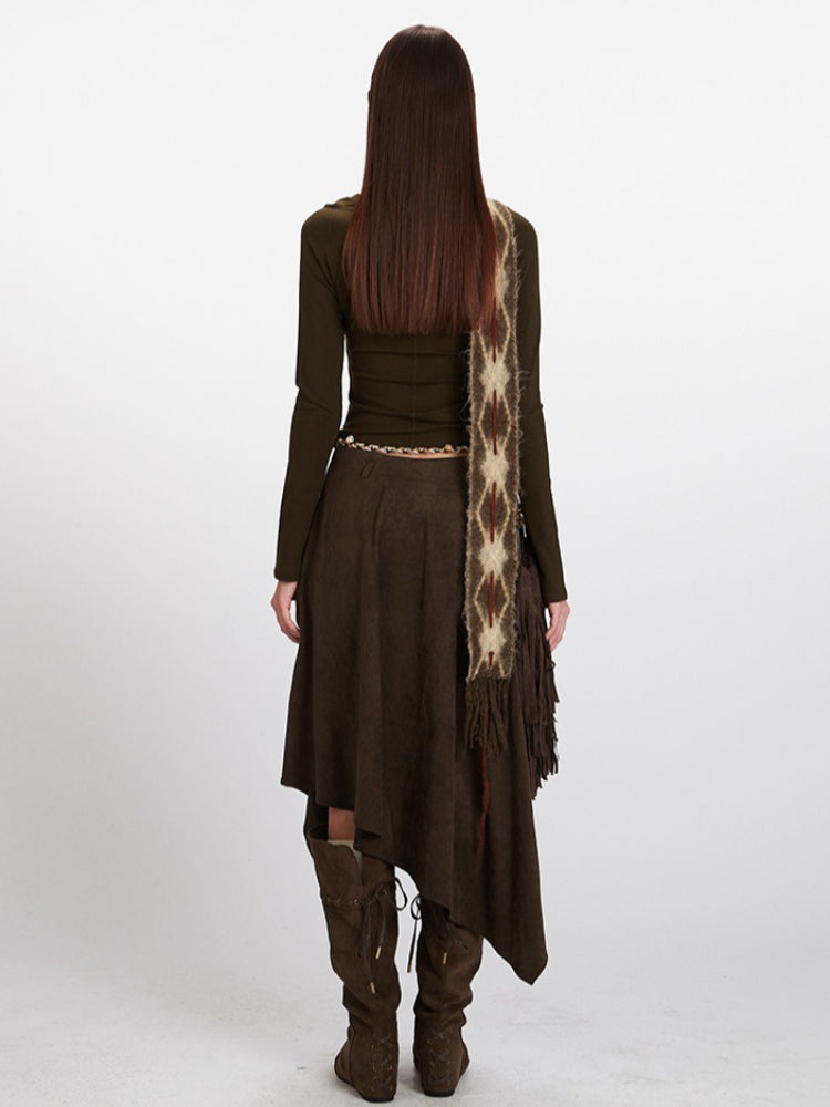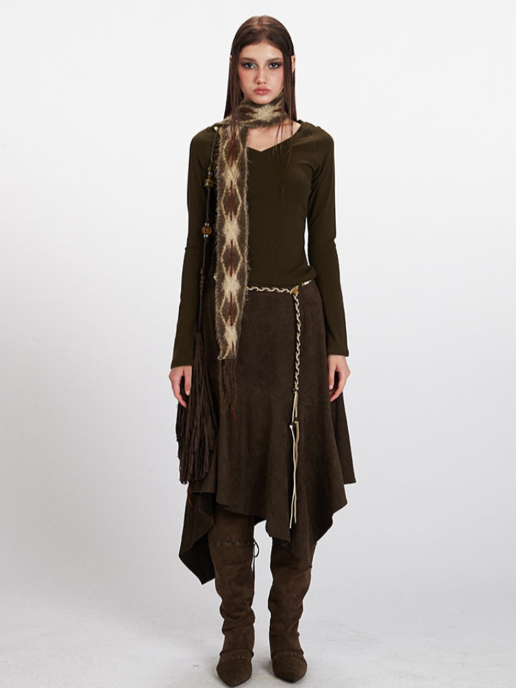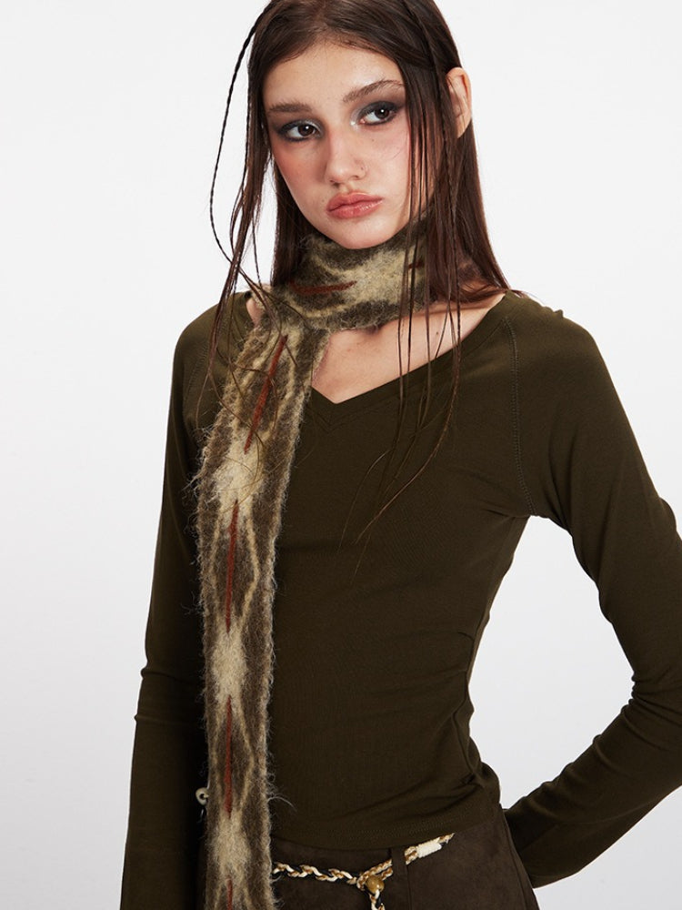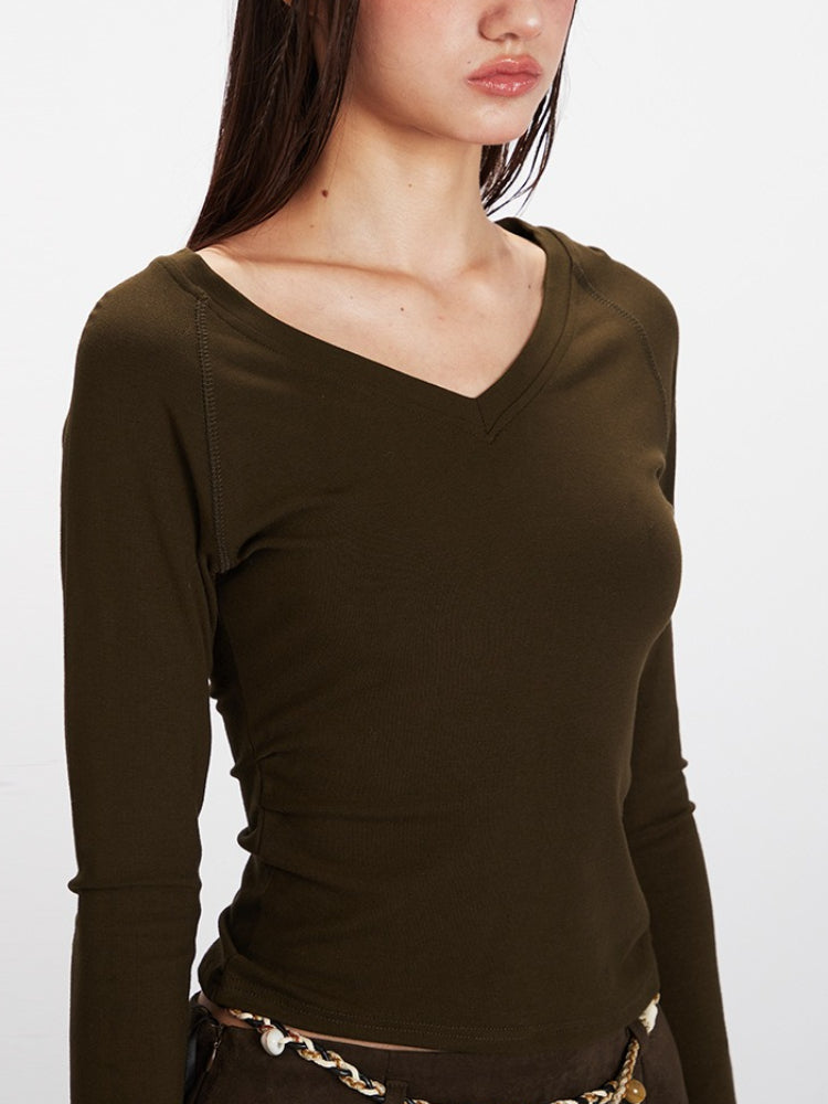 The deep V-neckline elongates the neck, while the classic raglan sleeves add a sporty, vintage touch. Crafted in a moody dark olive shade, it captures the essence of the "Old Money" countryside aesthetic mixed with downtown edge. Perfect for layering under an oversized leather jacket or pairing with low-rise trousers.