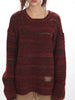 Wrap yourself in nostalgia with our Vintage Burgundy Striped Knit Sweater. Featuring a rich palette of deep cherry red, mocha, and charcoal stripes, this pullover captures the essence of the Grunge and Twilight Core aesthetics. The texture is soft and slightly fuzzy, mimicking the lived-in feel of a favorite thrift store find.