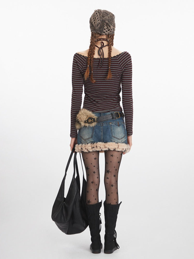Unleash your inner rockstar with this Vintage Burgundy Striped Off-Shoulder Top. A perfect fusion of 2000s pop-punk and modern Acubi Fashion, this piece is designed for the girl who isn't afraid to make a statement.