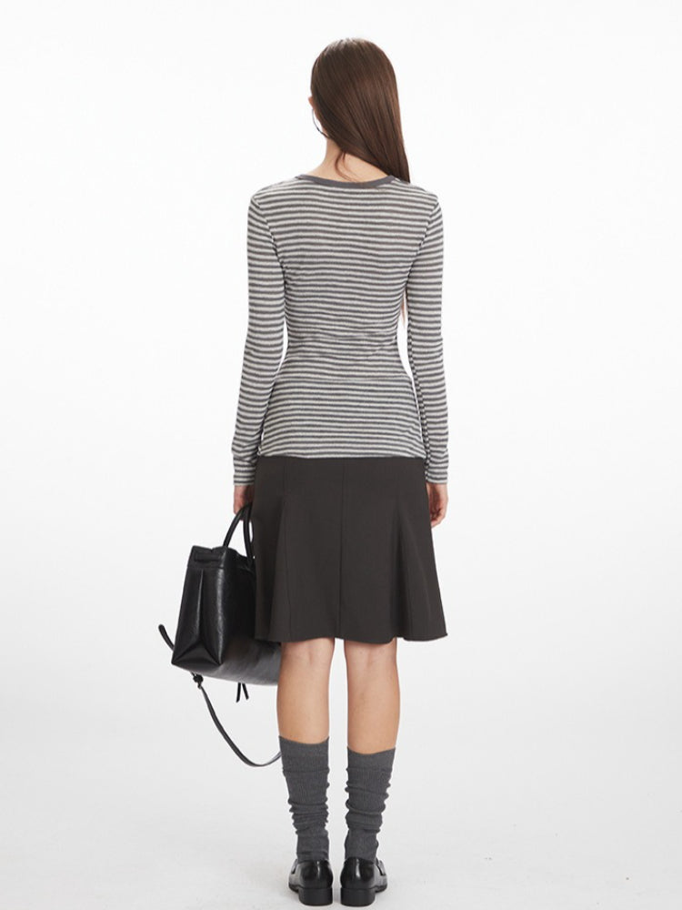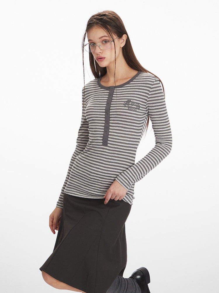 Channel the effortless cool of early 2000s teen drama icons (think Elena Gilbert or Bella Swan). This Vintage Grey Striped Henley Top is the ultimate everyday staple for the Downtown Girl aesthetic.