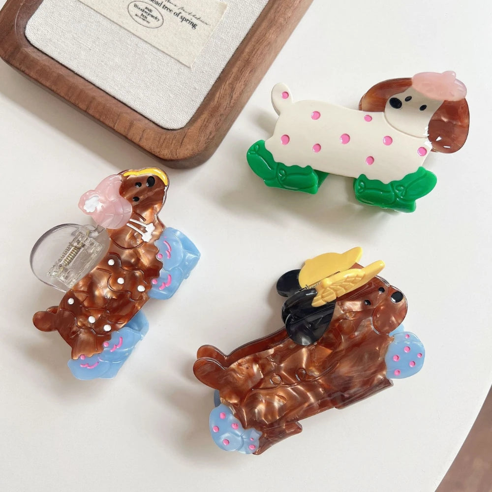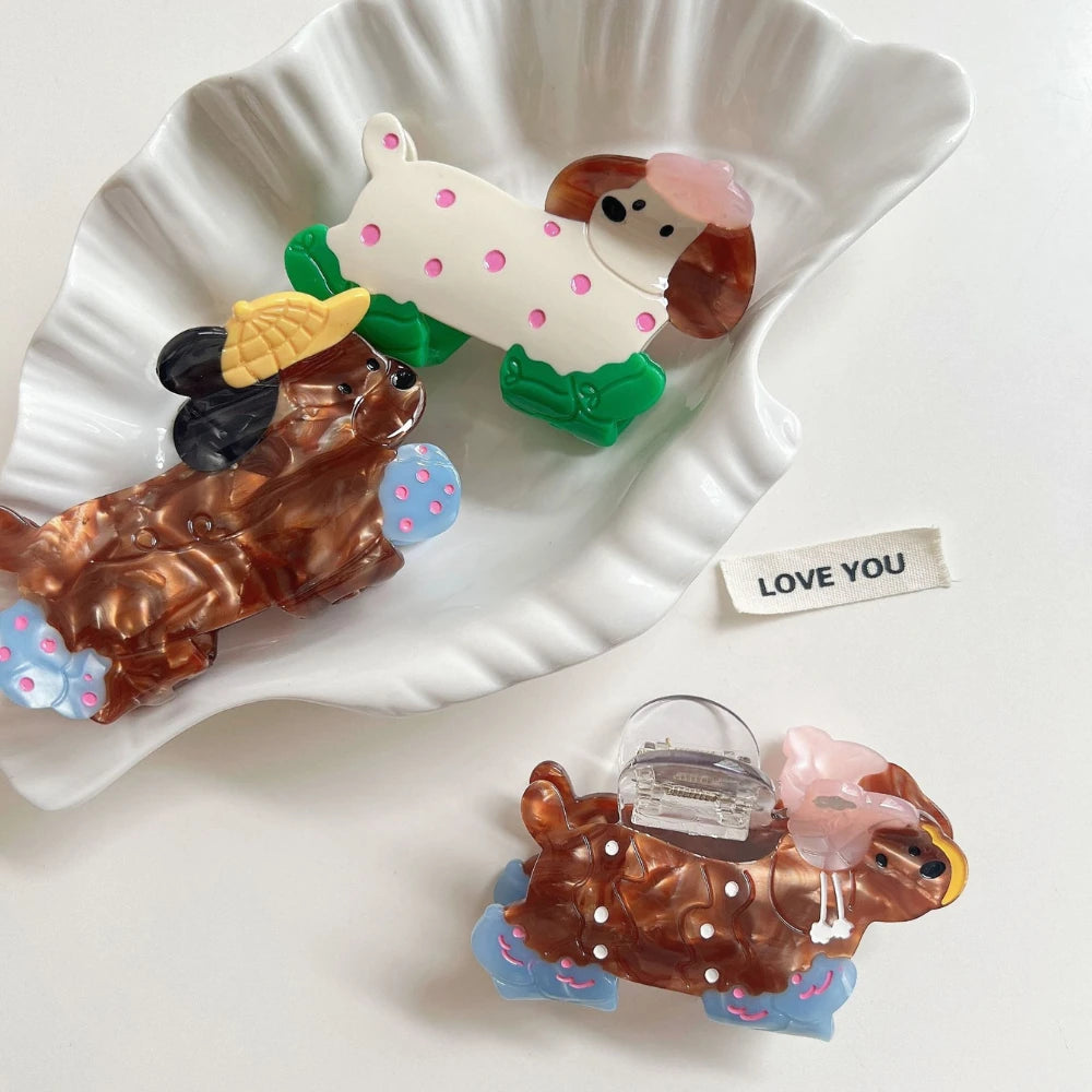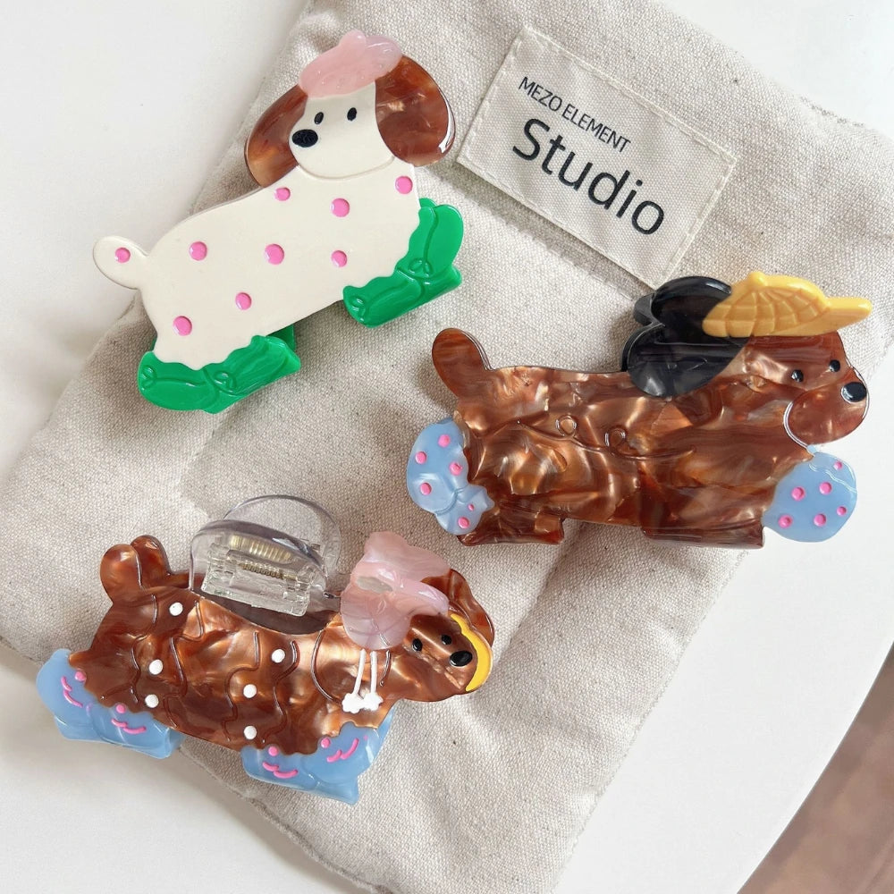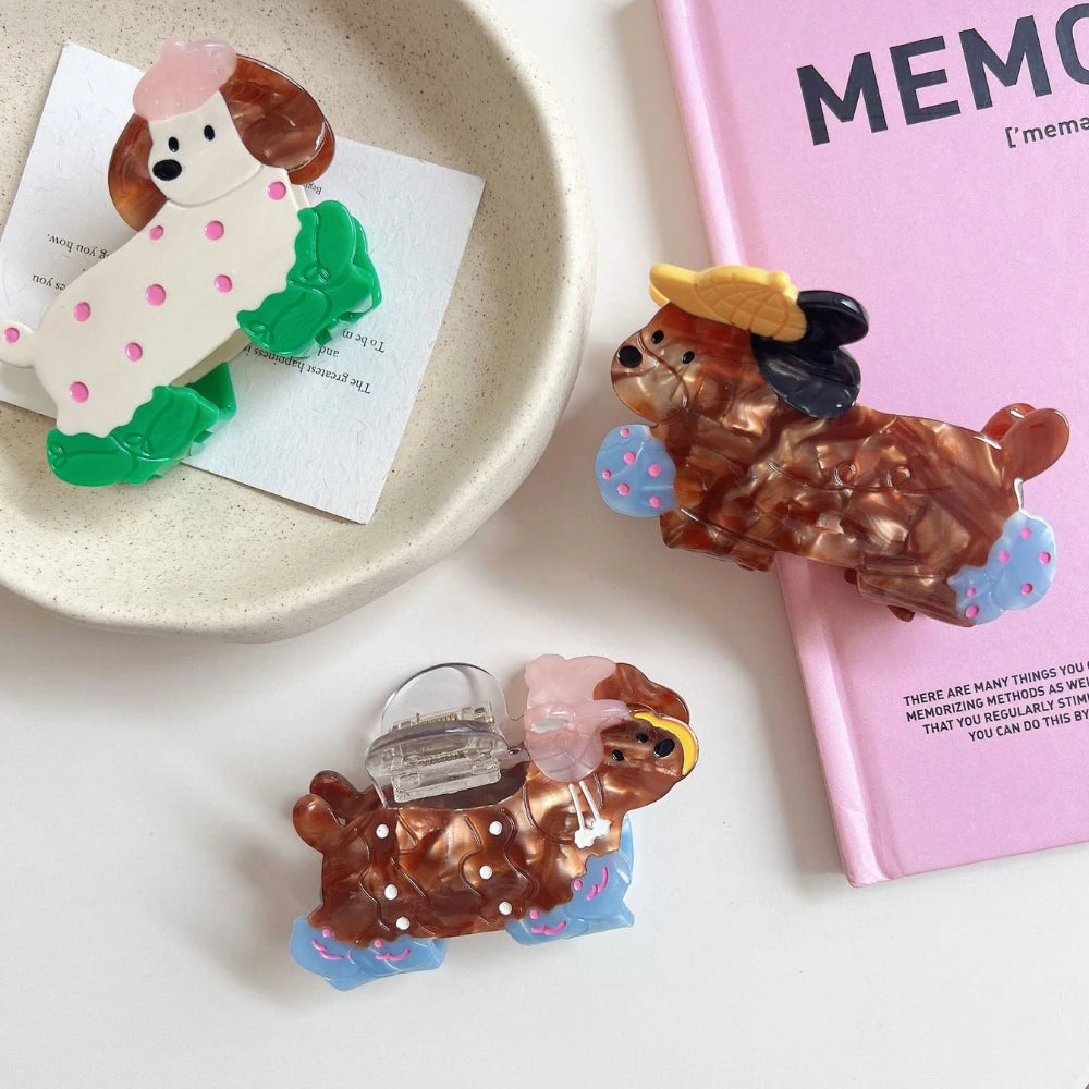 Prepare for a cuteness overload! This whimsical poodle clip is the perfect accessory for any "Dog Mom" or anyone who loves a playful, "dopamine" pop. This isn't just a novelty toy; it's a premium, solid 25g+ (0.88 oz) accessory, crafted from high-quality, multi-layered cellulose acetate. You can feel the durable, "boutique" quality in its substantial weight. It's the perfect, high-quality piece to secure a half-up style or add a festive touch to your look.