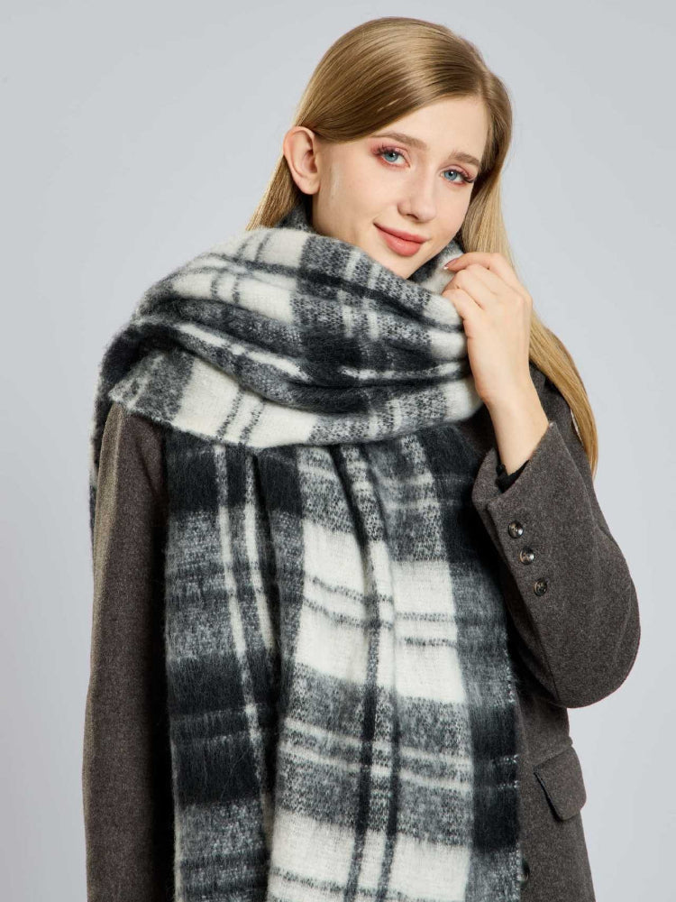 Make a bold statement this winter with this extra-long black and white plaid scarf. Measuring an impressive 230cm (approx. 90 inches), this oversized wrap is designed for maximum versatility—drape it loosely, knot it for a chunky look, or wrap it multiple times for superior warmth. The brushed fabric mimics the soft, fuzzy texture of mohair, offering a high-end designer look without the high maintenance.